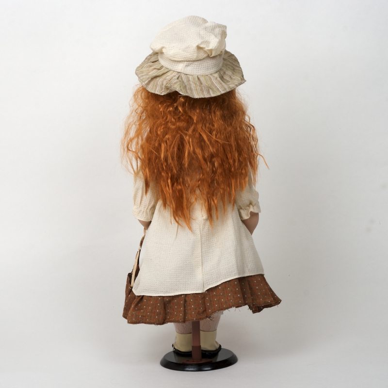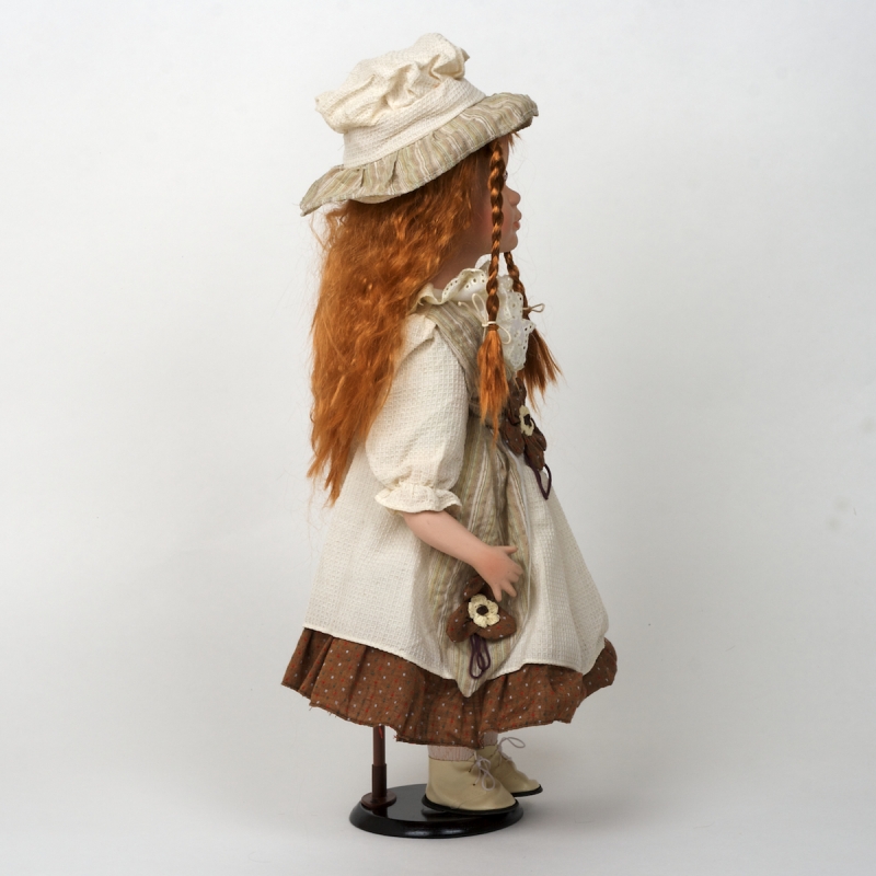 Porcelánová bábika ručne maľovaná - hnedovláska s kvetom na šatách veľká 56cm