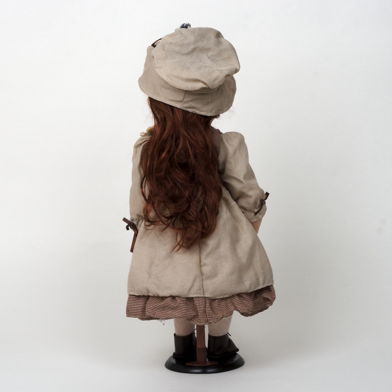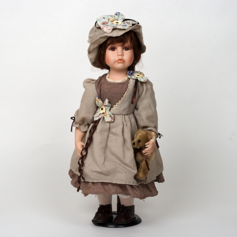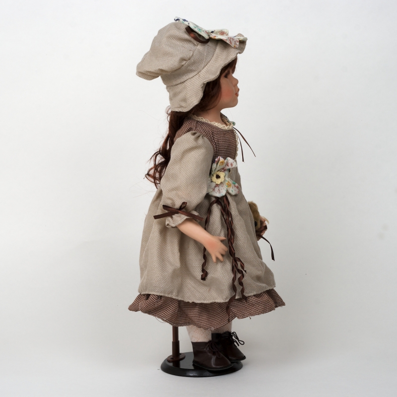 Porcelánová bábika ručne maľovaná hnedovláska s medvedíkom 56cm
