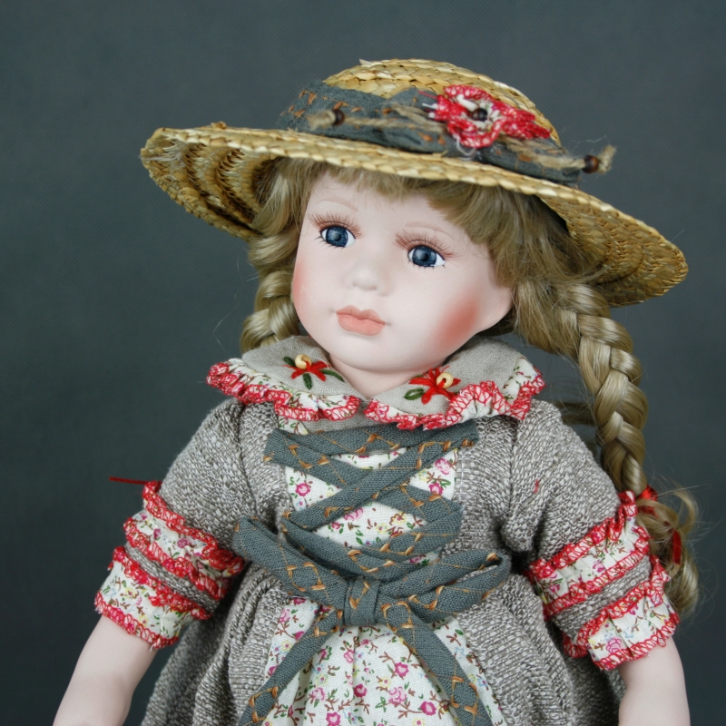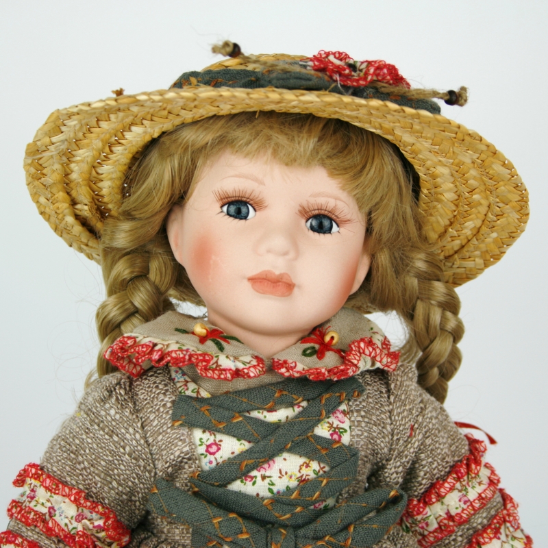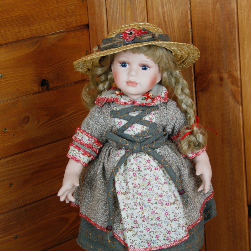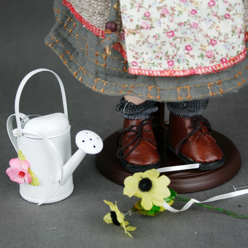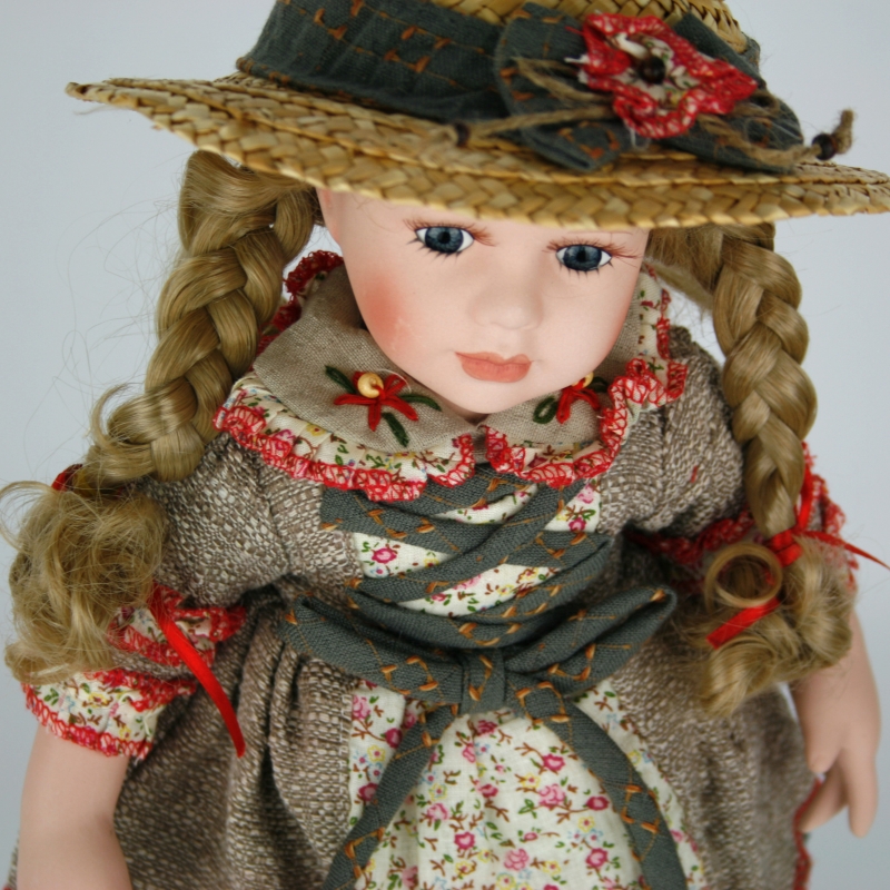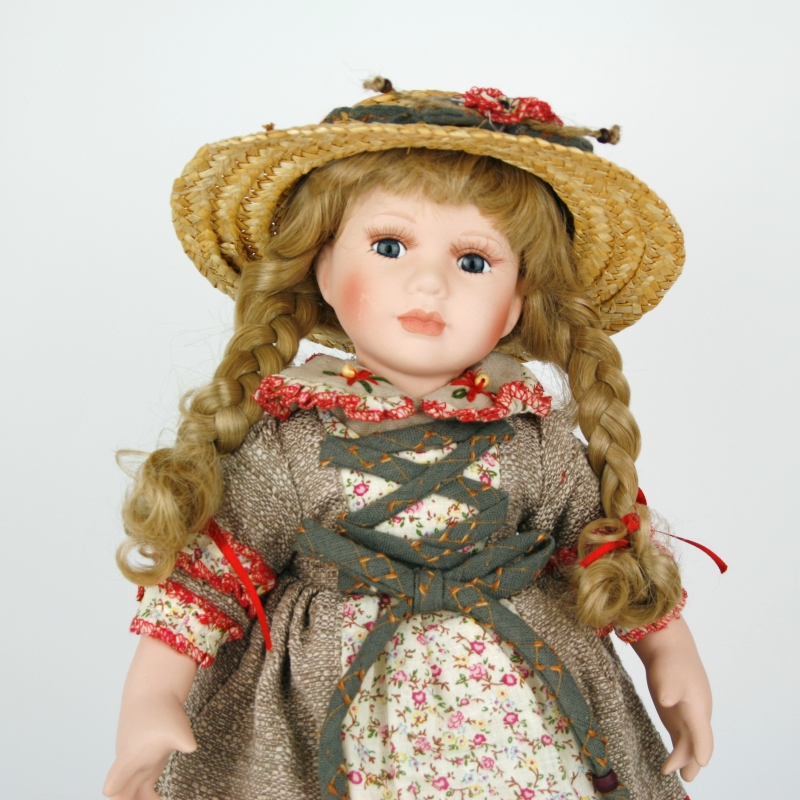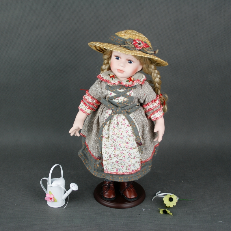 Porcelánová bábika Sára je určite vášnivú záhradníčka. Aj na záhradu je oblečená do krásnych kvetovaných šiat so šnurovačkou, pred slnkom ju chráni slamený klobúk a v ruke drží kanvičku na zalievanie.