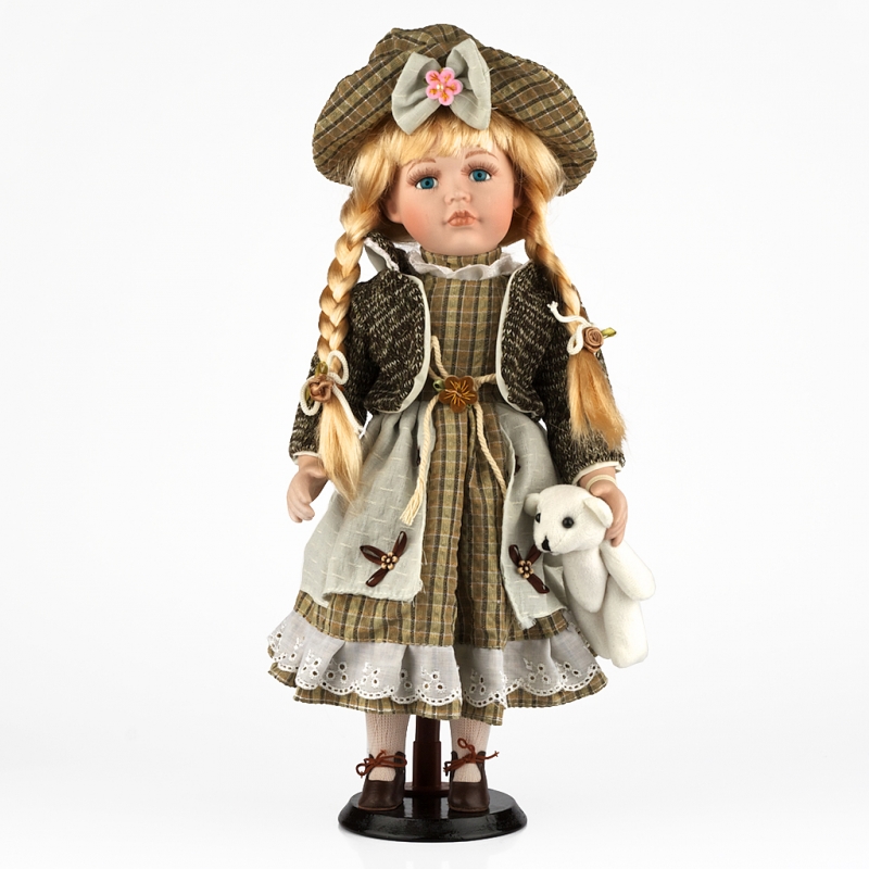 Porcelánová panenka v šatečkách s medvídkem 42cm je nádherná dekorace pro váš dům či chalupu. Hlavička, ručičky a nožičky jsou vyrobeny z porcelánu. Velice krásný a působivý dekorativní doplněk.