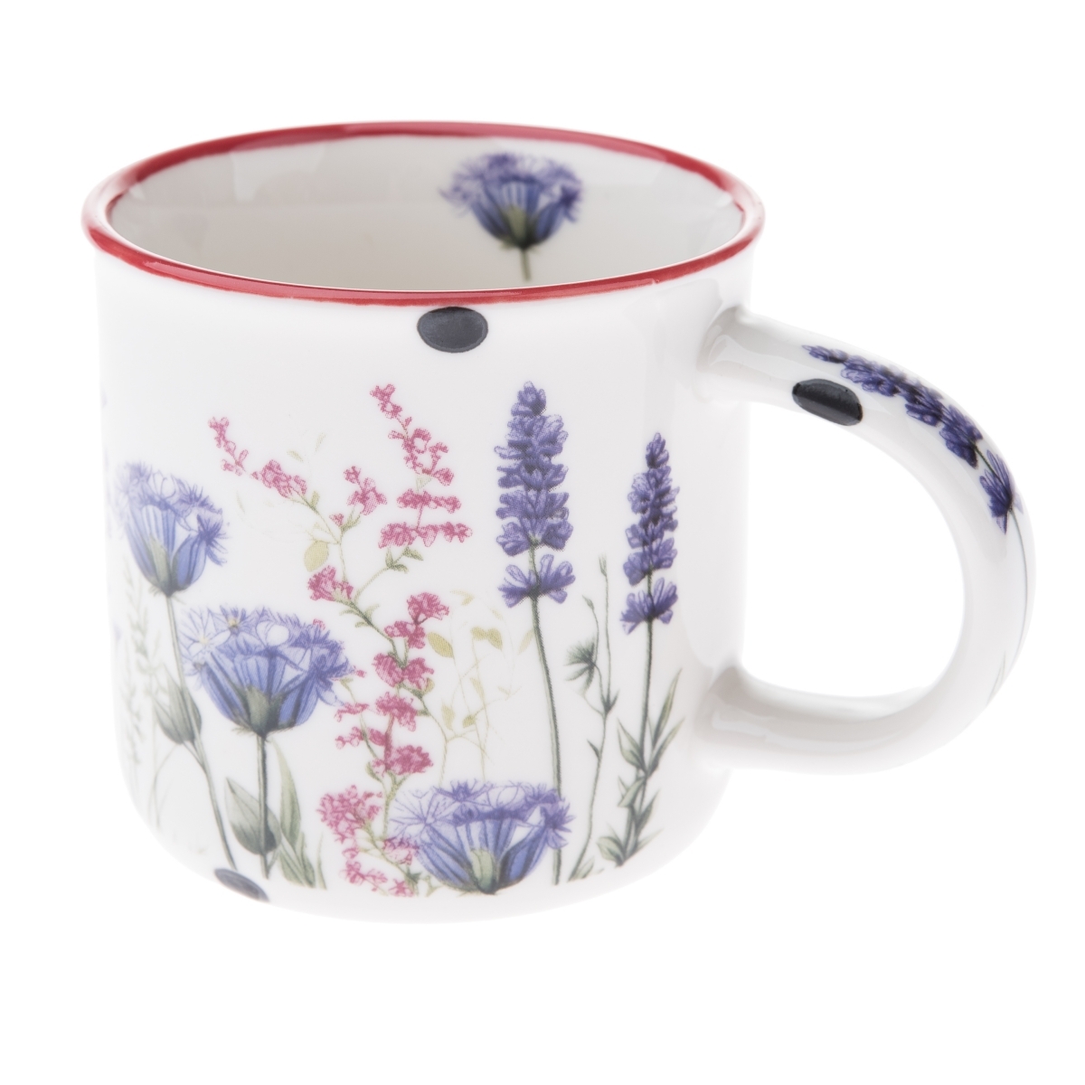 Porcelánový hrnček s objemom 230ml v chalupárskom prevedení. Dizajn s levanduľami a lúčnymi kvetmi navodí pokojnú atmosféru, v ktorej si doprajete svoju šálku čaju s priateľmi, ale aj sami.