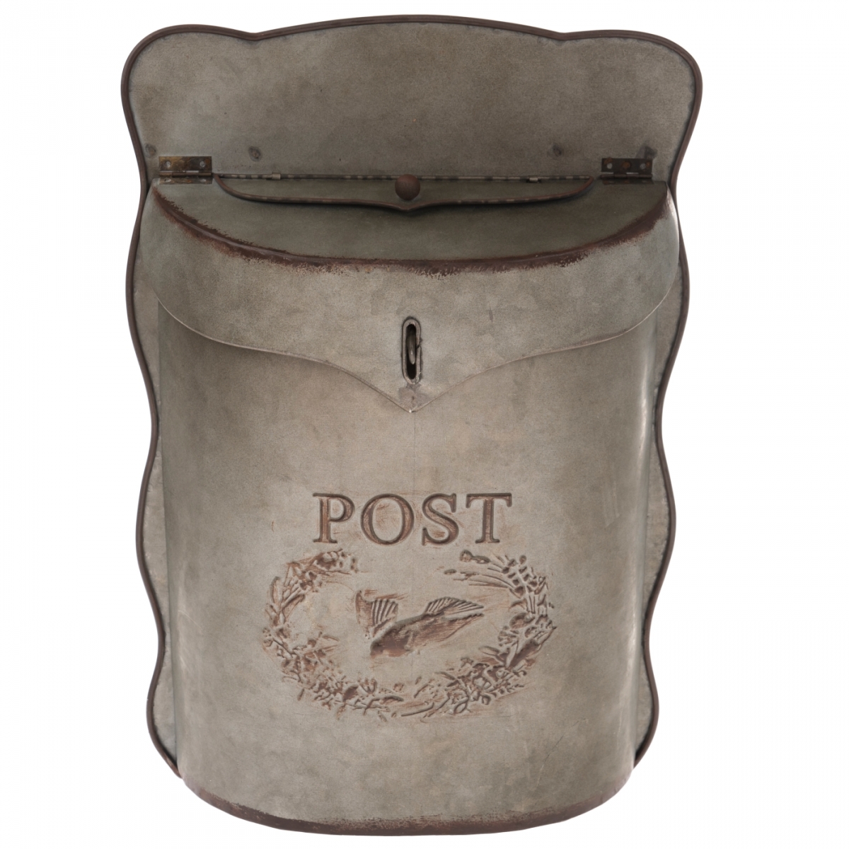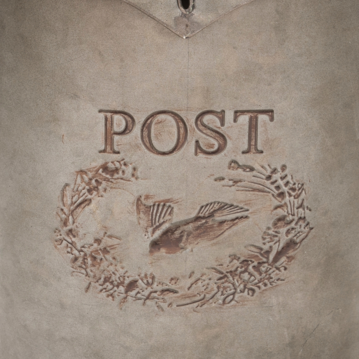 Táto poštová schránka je vybavená vekom bez zámku, v ktorom je 13 cm otvor na vhadzovanie listov. Nebudete teda k jej otvoreniu potrebovať žiadny kľúčik. Na prednej strane má vyrazený nápis POST s rastlinným motívom a holubicou.
