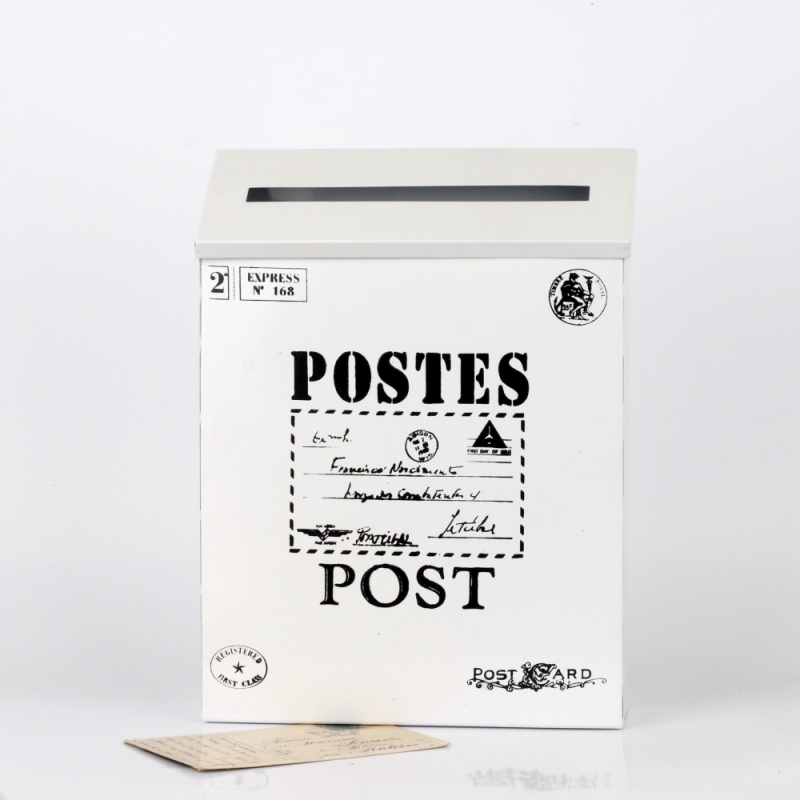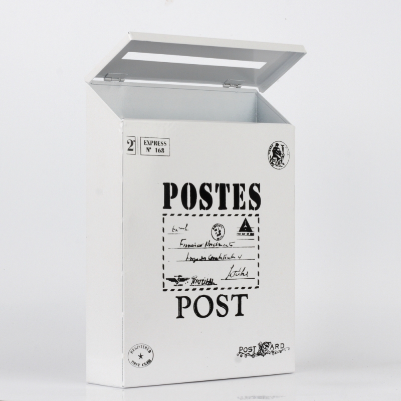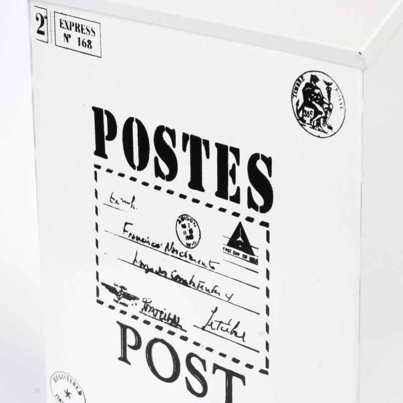 Plechová poštová schránka v retro štýle má jednoduchý čierno-biely dizajn, ktorý ťahá oči. Veko má otvor na listy, ale ide aj ľahko otvoriť a vložiť tak dovnútra schránky väčšie poštu.