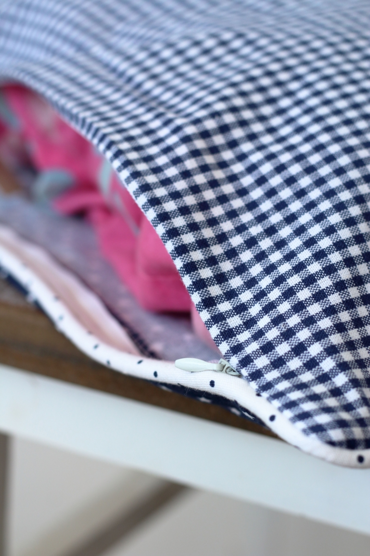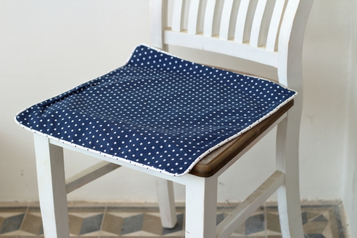 Tmavo modrá farba v kombinácii s bielou sa opakuje na oboch stranách povlaku. Na jednej s motívom hviezdičiek, na druhej v jemnej kocke. Zapínanie je na zips.