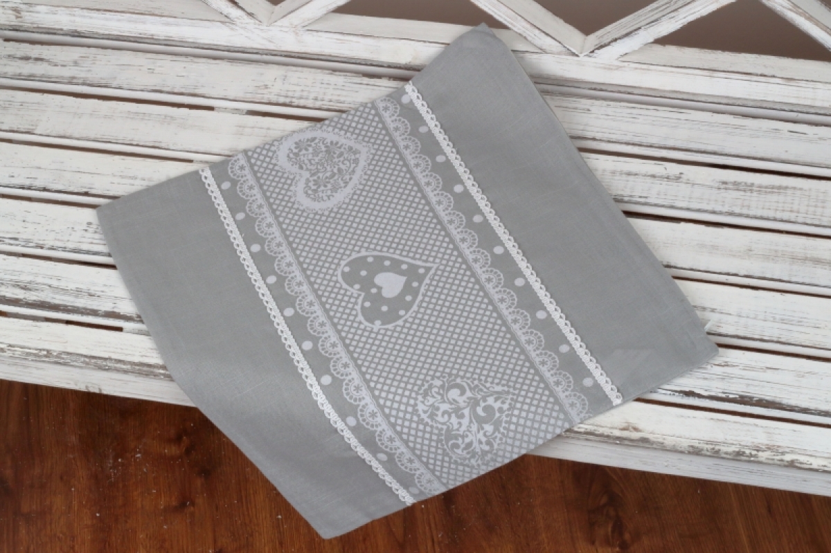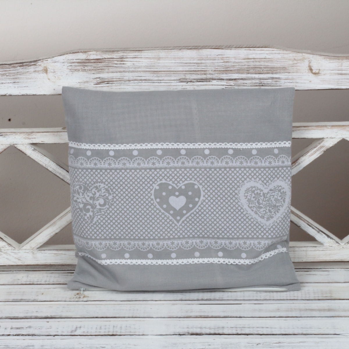 Povlak na vankúš 40x40 cm šedej srdce v romantickom vidieckom štýle, ktorý Všetkému interiéru náramne pristane!
