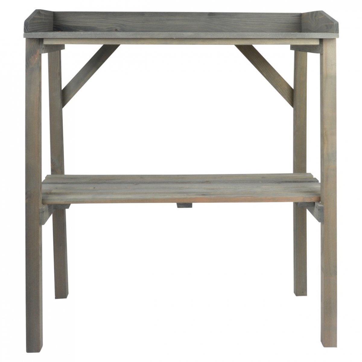 Pracovný stôl presádzacia má 2 odkladacie plochy, napríklad na květiníče sa sadenicami alebo na záhradné náradie. Pracovný stôl sa vyrába v drevenom prírodnom farebnom prevedení s sivou patinou.