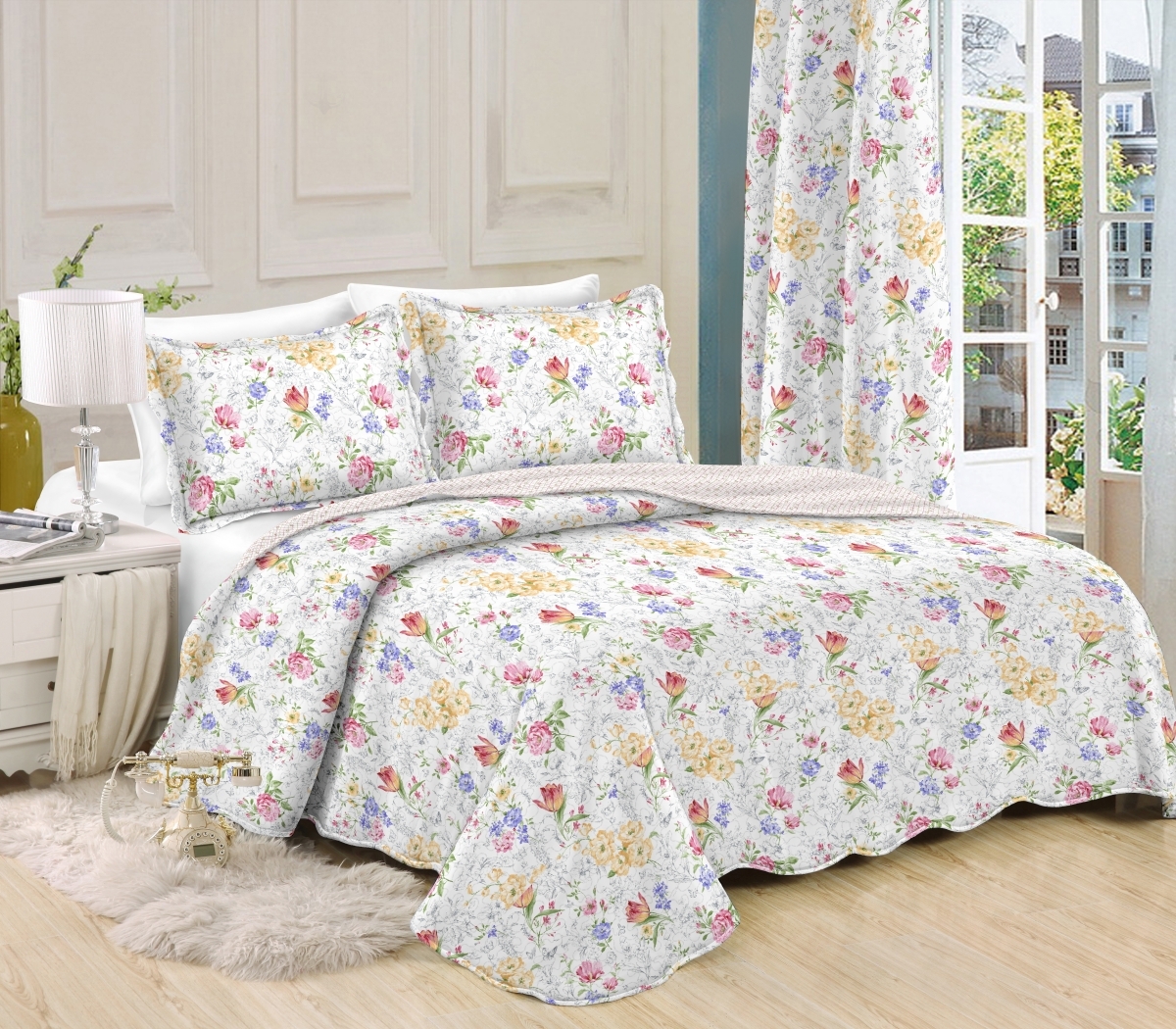 Prehoz na jednolôžko v sade s povlakom na jeden vankúš, s nádherným motívom rozkvitnutej záhrady