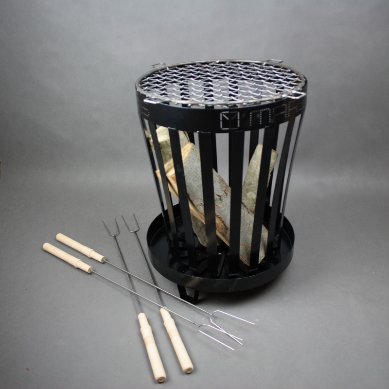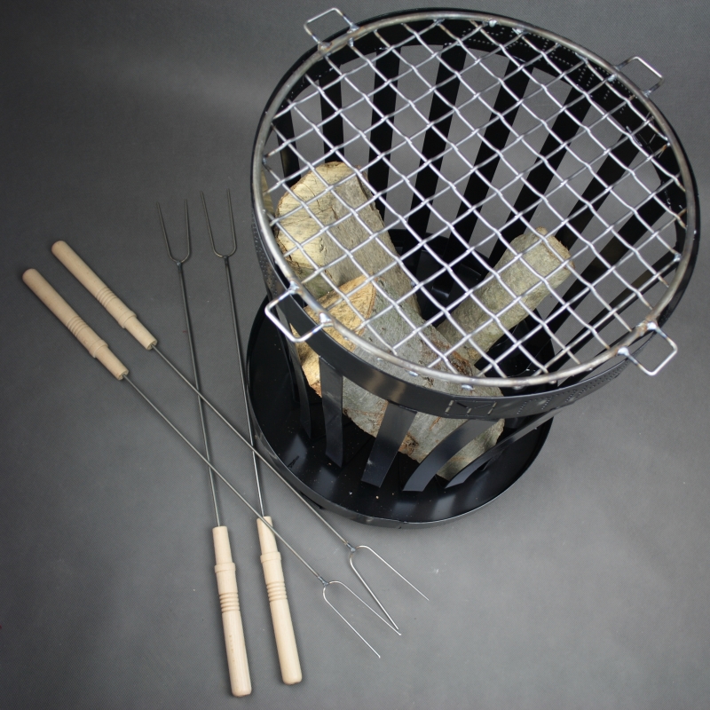 Súčasťou balenia je ohnisko, 4 opekací vidlice a rošt na grilovanie.