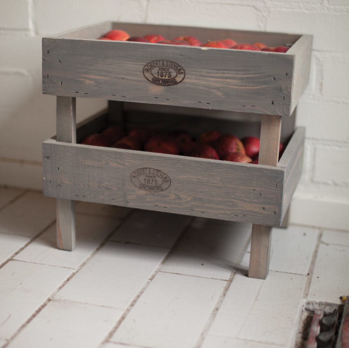 Prepravka je vhodná pre ukladanie ovocia či zeleniny. Vďaka stohovateľné funkcii pri kúpe viacerých kusov je veľmi vhodná aj do menších komôr alebo pivníc. Vyrába sa z kvalitného borovicového dreva s sivou patinou a vypáleným logom ROBERT and STEVENS, SINCE 1875, GROWERS.
