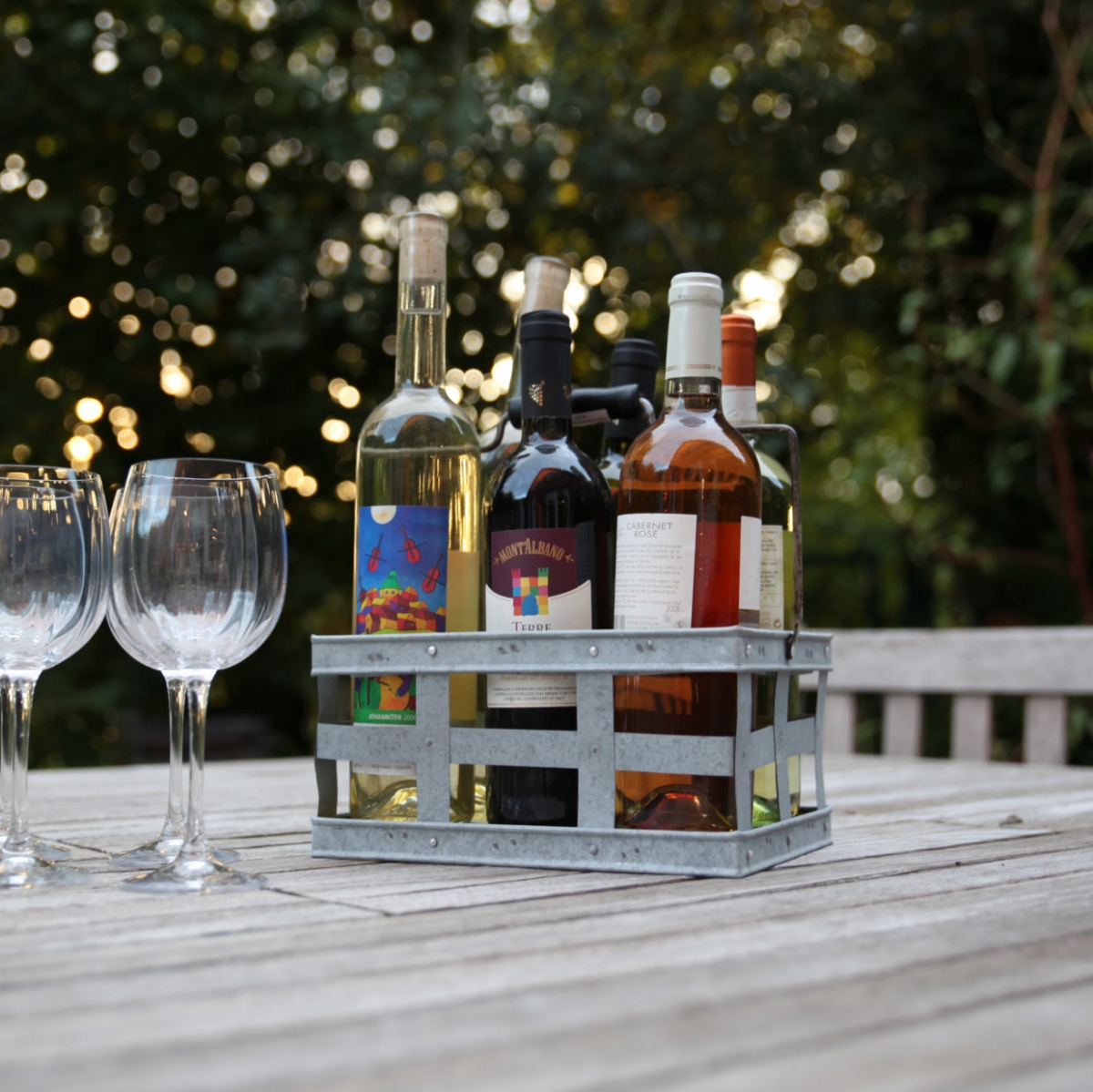 Prepravka na víno s dreveným úchopom. Vhodná ako organizér fliaš. Obdĺžniková.