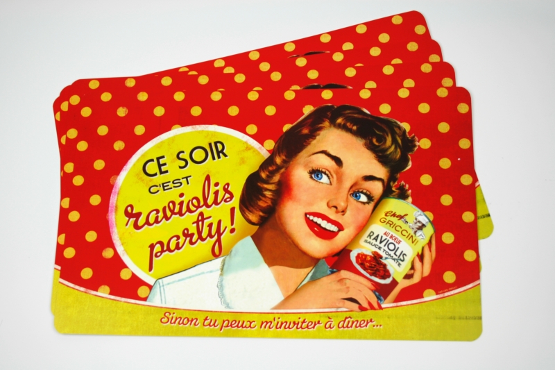 Prestieranie červené raviolis Party je vyrobené z plastu a poteší každého, kto sa zaujíma o retro štýl a má rád staré kaviarenskej motívy.