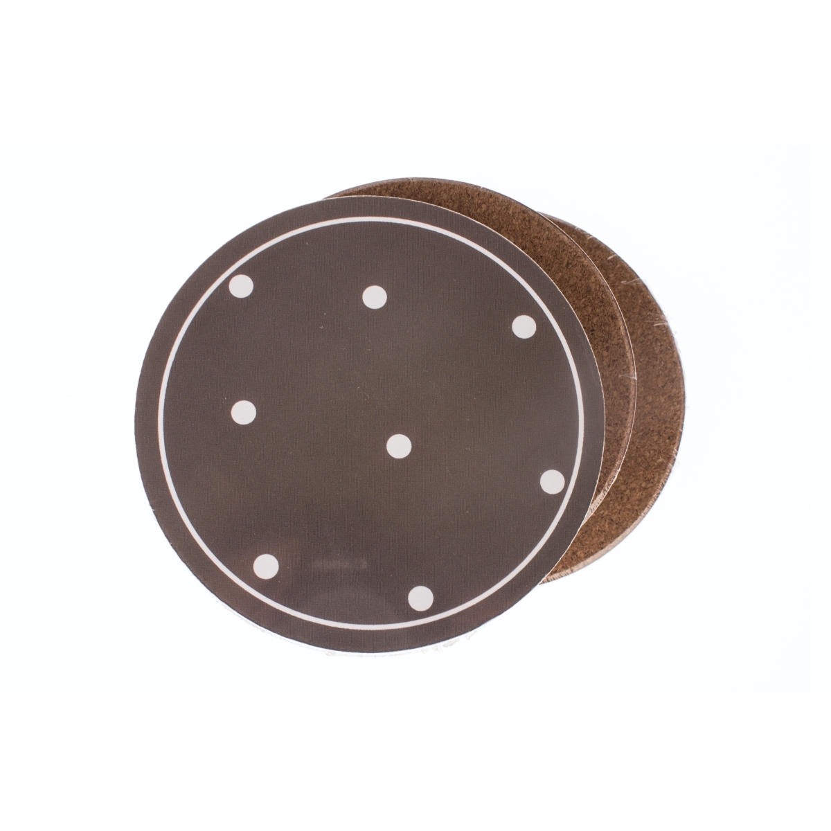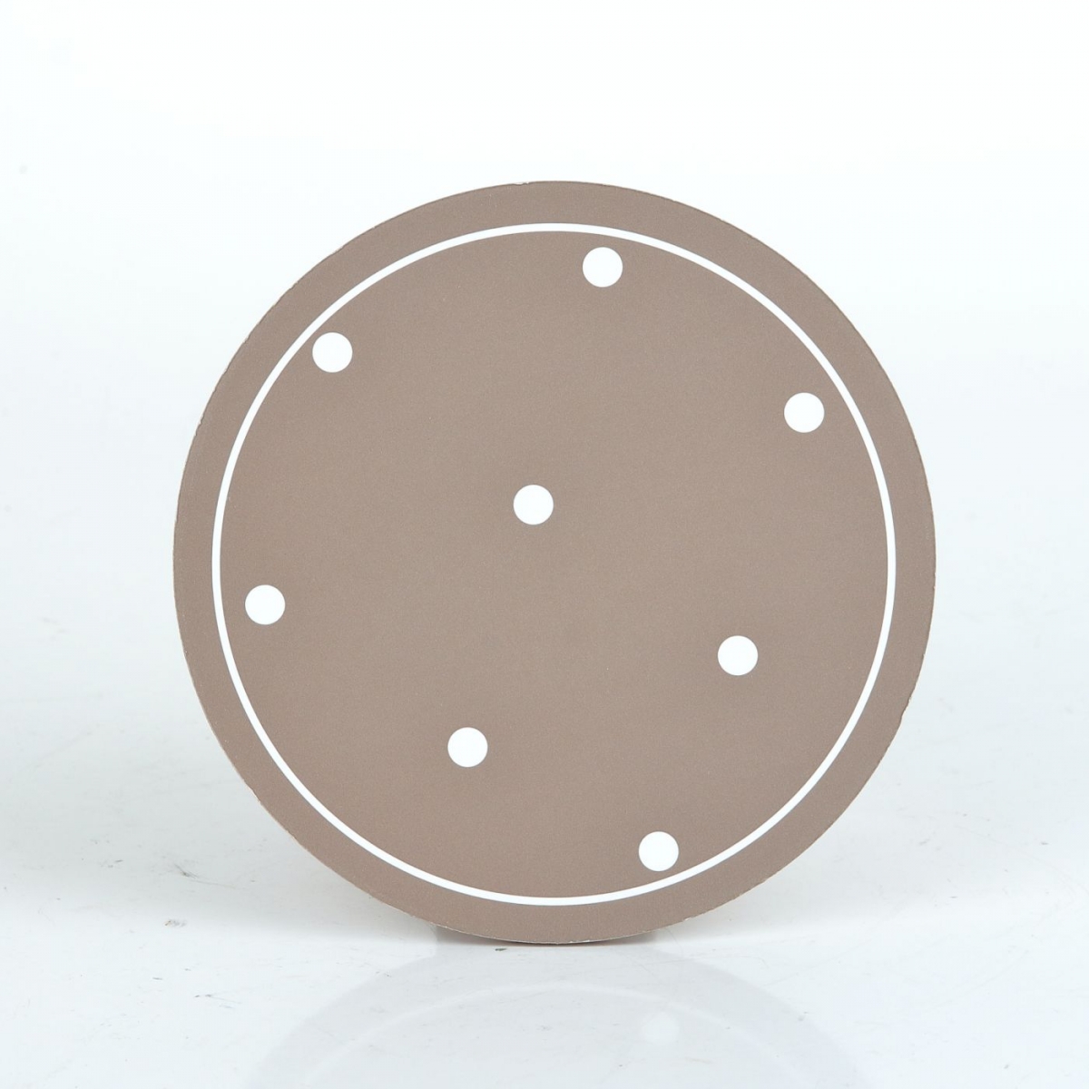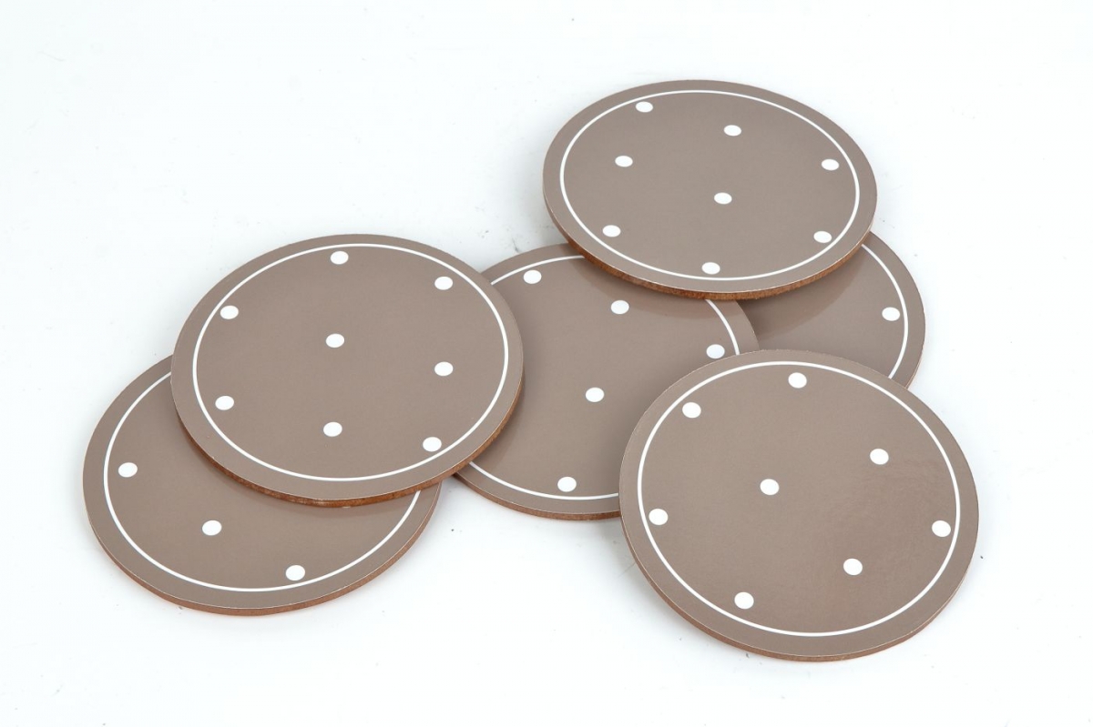 Prestieranie guľaté vo svetlo hnedom farebnom prevedení s bielymi bodkami spríjemní posedenie s šálkou kávy alebo obľúbeného čaju.