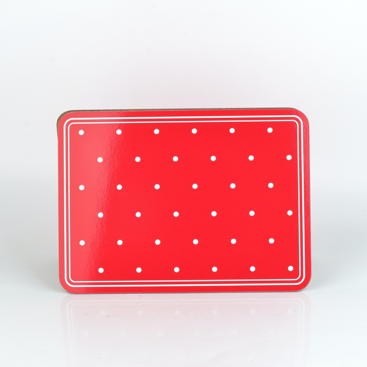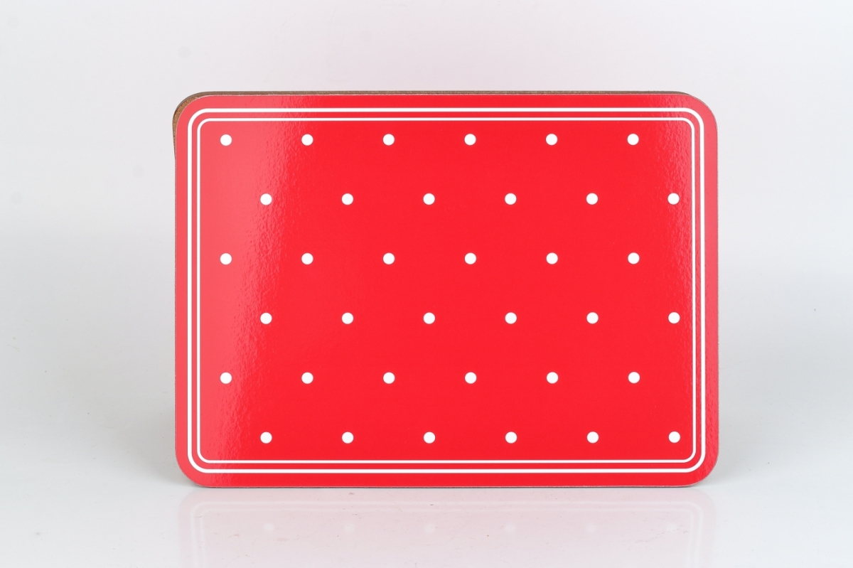 Prestieranie na stôl červenej farbe s bielymi bodkami v sade 2ks pristane každému stolu. Pri stolovaní zabráni poškodeniu stola horúcimi taniermi a ostrými príbormi, ušpineniu jedlom, ale zároveň bude aj dizajnovým prvkom.