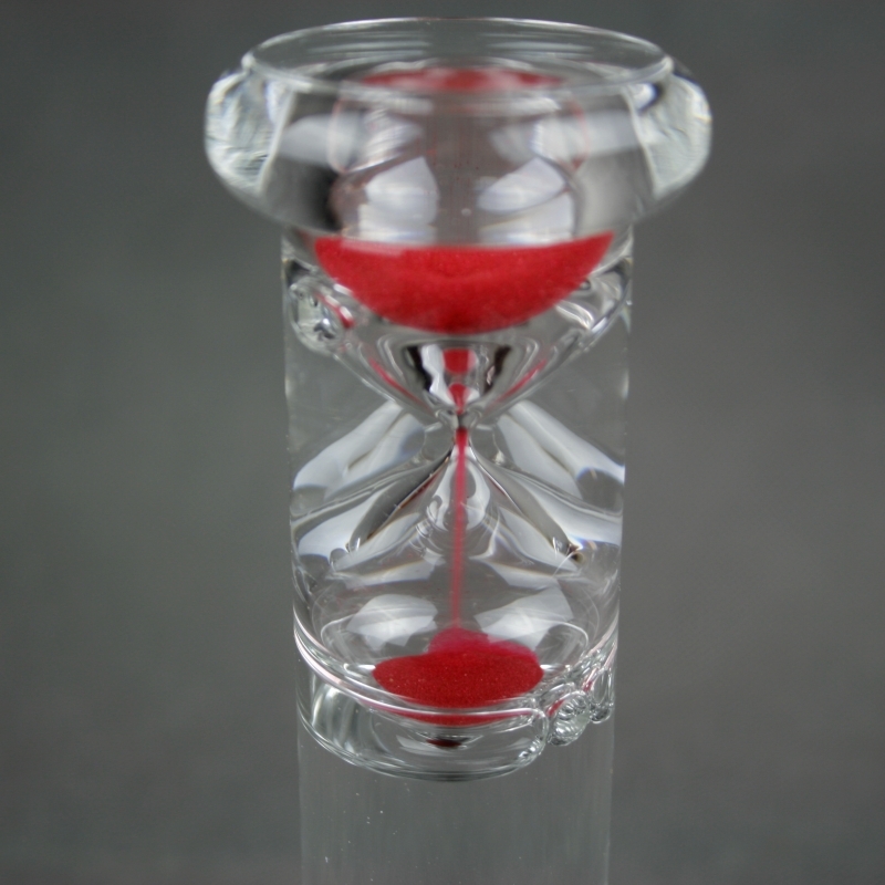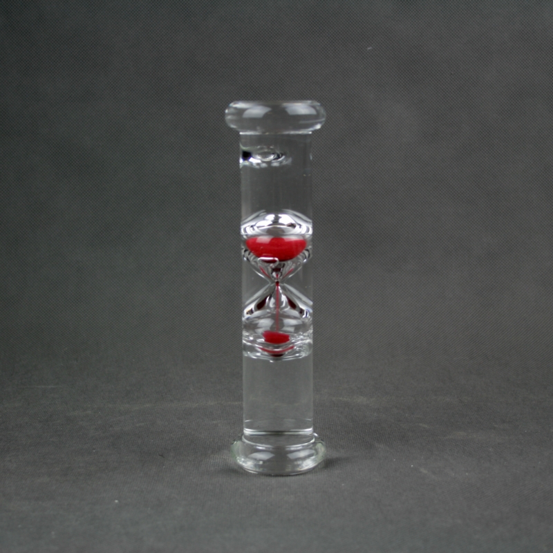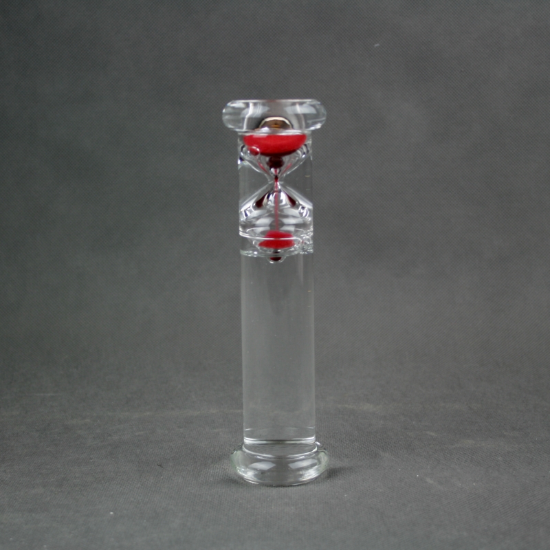 Presýpacie hodiny malé červené s fascinujúcim fyzikálnym efektom. Ak naplnenou sklenenou fľašou otočíte, piesok sa pohybuje nadol, zatiaľ čo presýpacie hodiny plávajú hore. Každé hodiny sú vyrobené ručne a sú teda jedinečné.