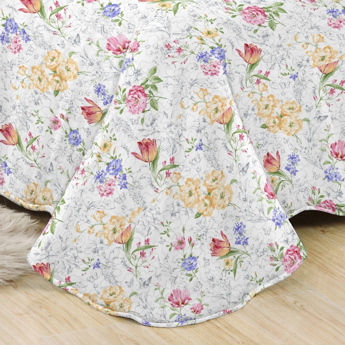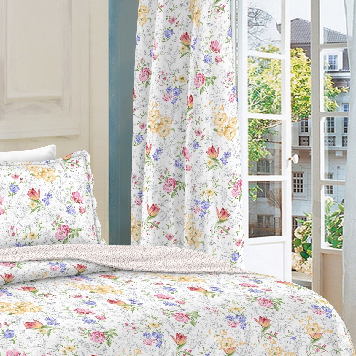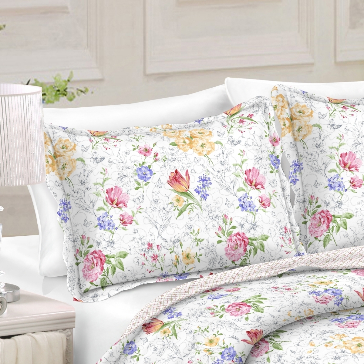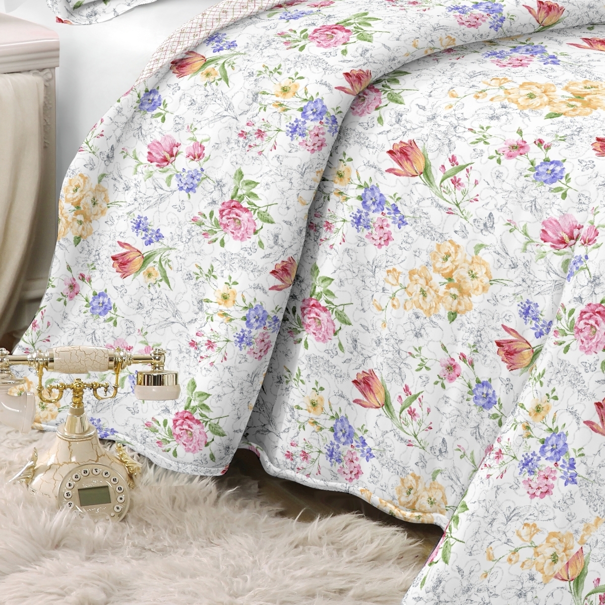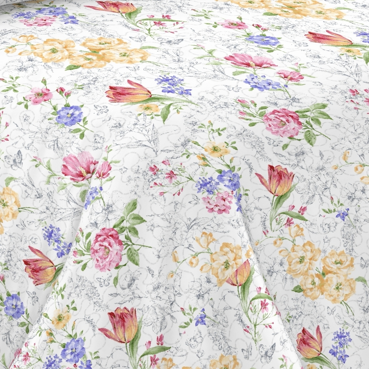 Prikrývka na dvojposteľ v sade s povlaky na dva vankúše, s krásnym motívom rozkvitnutej záhrady