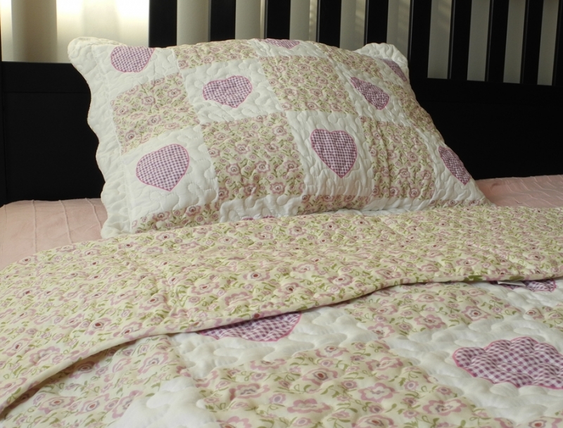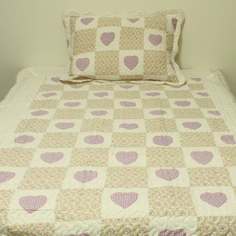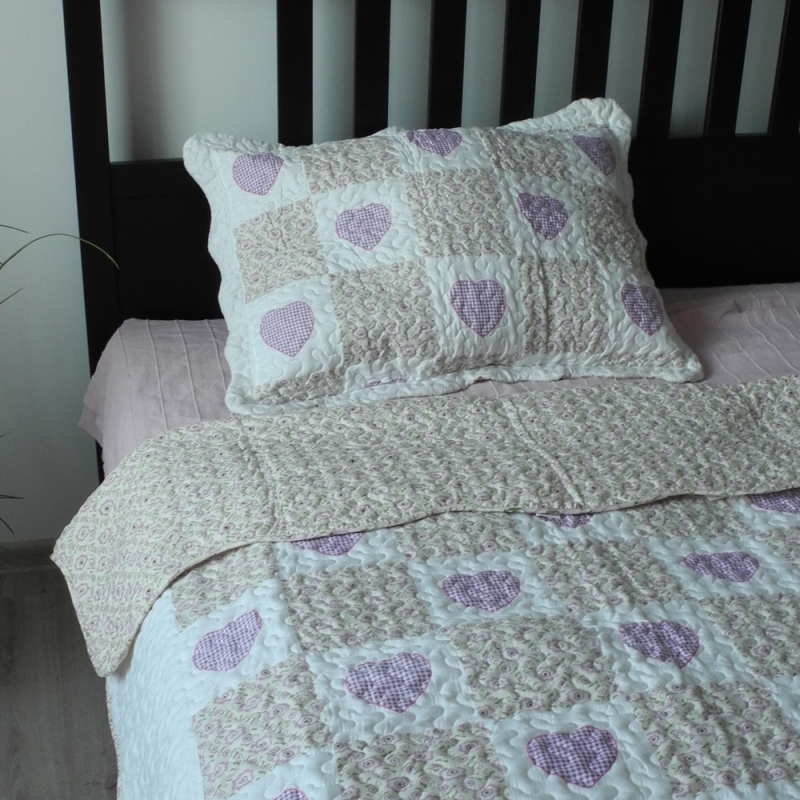 Prikrývka na jednolôžko patchwork 140x200cm fialové srdce v romantickom dievčenskom štýle sa skvele hodí do spální malých princezien a veľkých slečien.