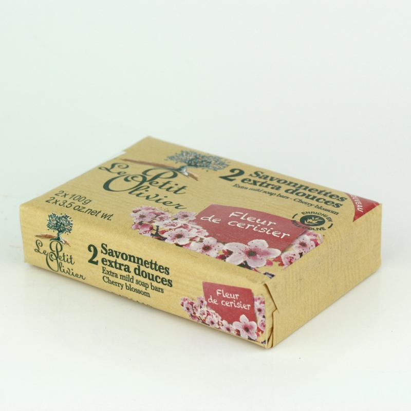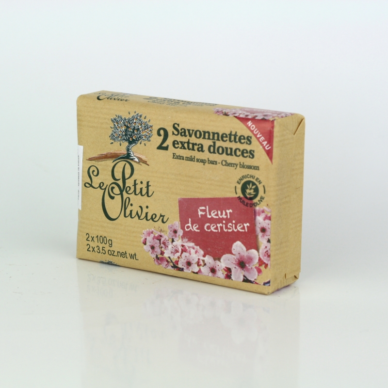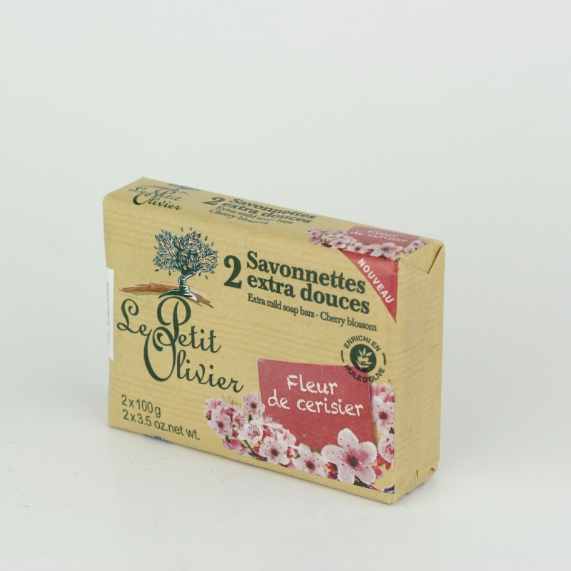 Prírodné mydlo Le Petit Olivier čerešňový kvet 2x100g s olivovým olejom a prírodnými extraktmi jemne čistí a hydratuje pokožku celého tela.