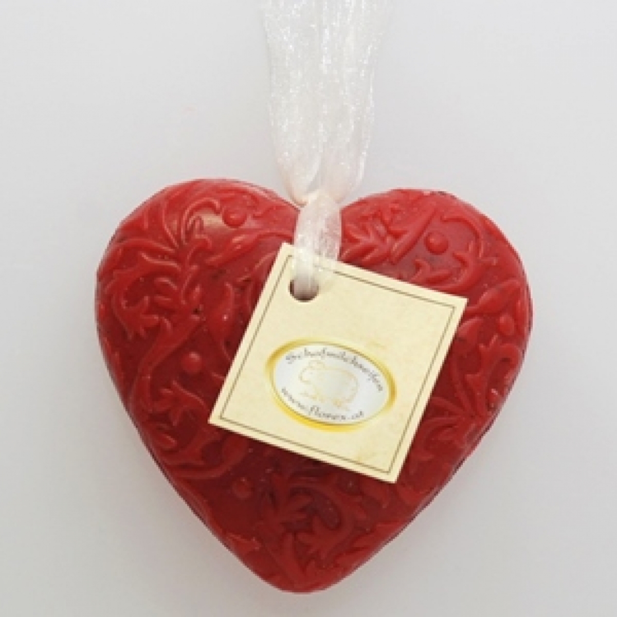 Prírodné mydlo s obľúbenou vôňou ruže potešia všetky milovníčky (i milovníkov) pekných a voňavých vecí. Dodáva sa v tvare srdca s ornamentami na saténové šnúrke, je tak ideálnym darčekom pre vašich blízkych.