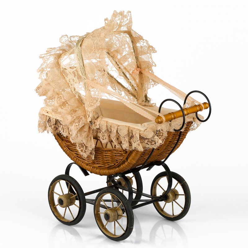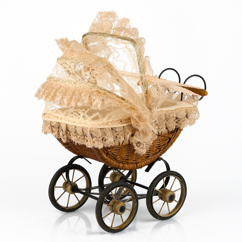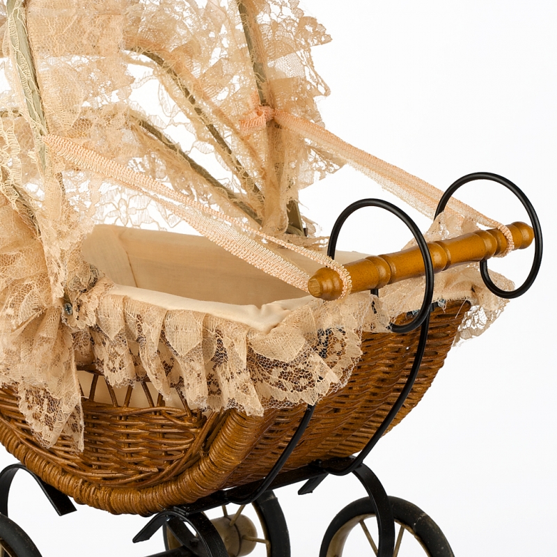 Proutěný kočárek pro panenky 39x20x34cm je zmenšená kopie reálného starodávného proutěného kočárku.