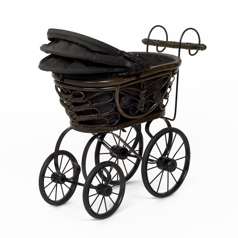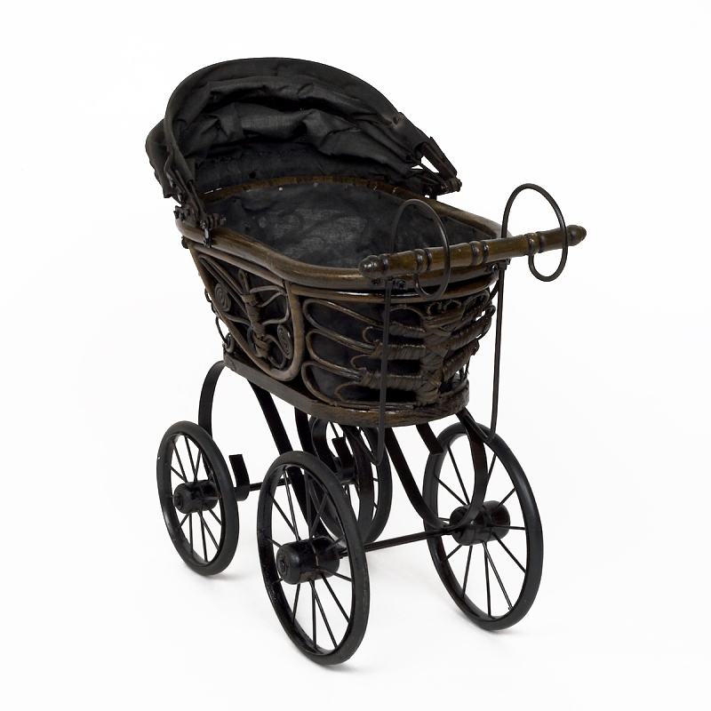 Proutěný kočárek pro panenky 47x21x39cm je zmenšená kopie reálného starodávného proutěného kočárku.