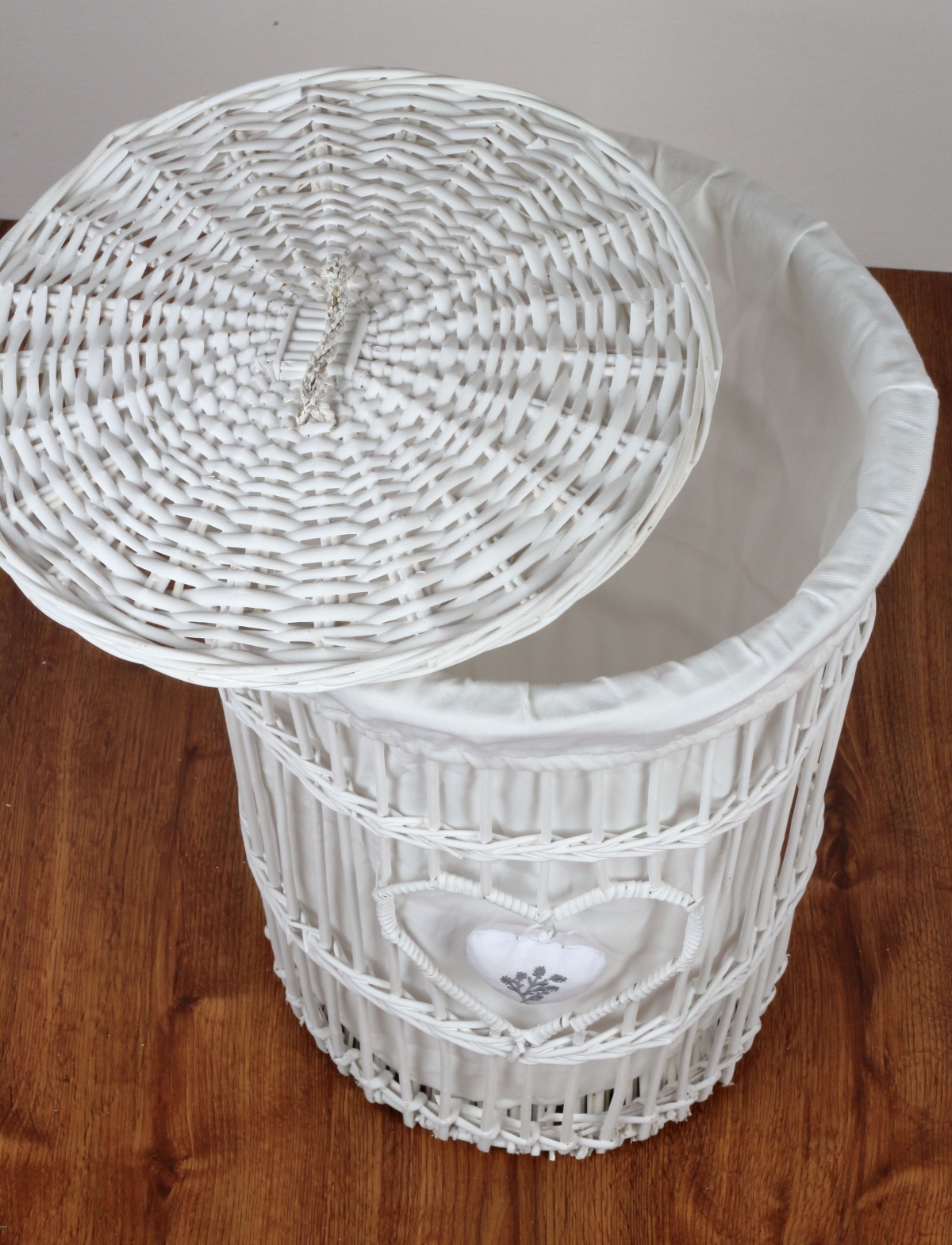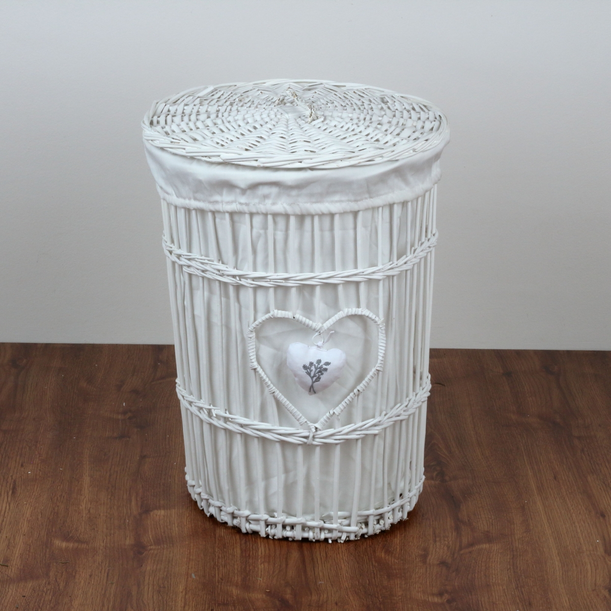 Prútený kôš na bielizeň biely levanduľovej srdce 51cm elegantným spôsobom ukryje špinavú bielizeň a stane sa súčasťou akéhokoľvek vidiecky zariadenej izby alebo kúpeľne.