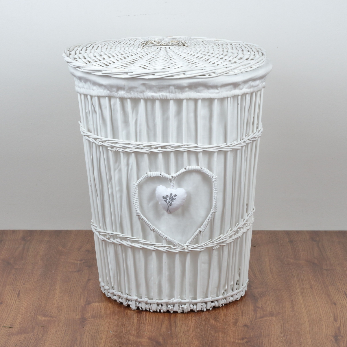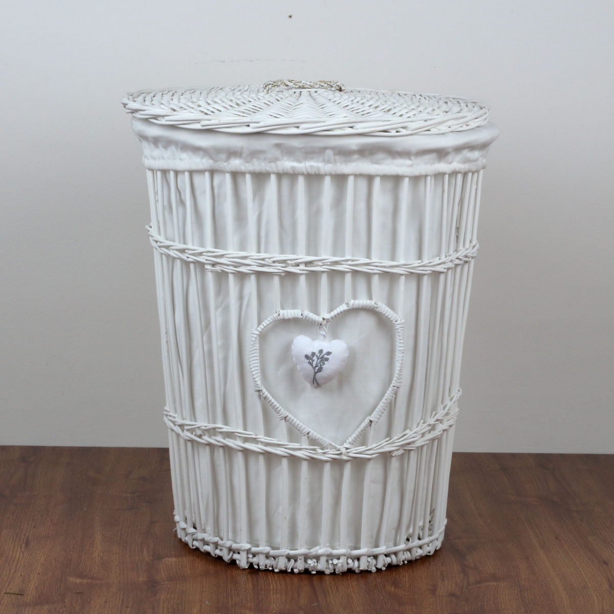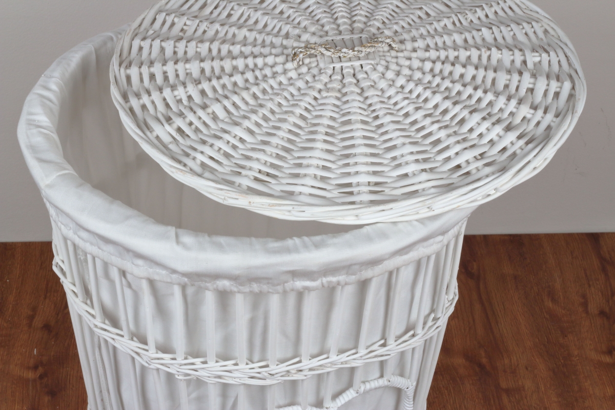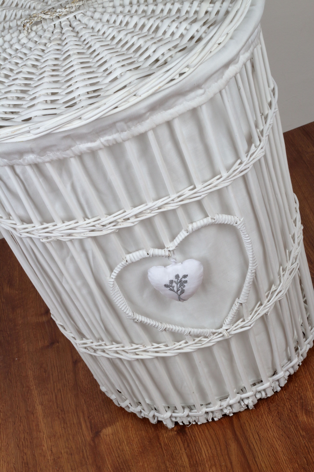 Prútený kôš na bielizeň biely levanduľovej srdce 59cm elegantným spôsobom ukryje špinavú bielizeň a stane sa súčasťou akéhokoľvek vidiecky zariadenej izby alebo kúpeľne.