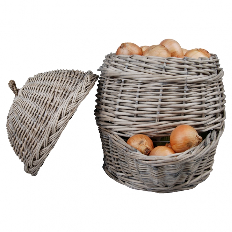 Prútený kôš na cibuľu nielen že krásne vyzerá, ale taky slúži k správnemu skladovanie cibule.