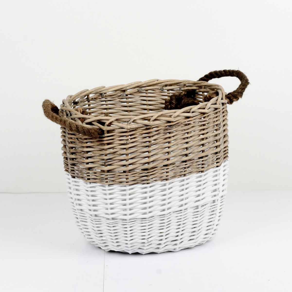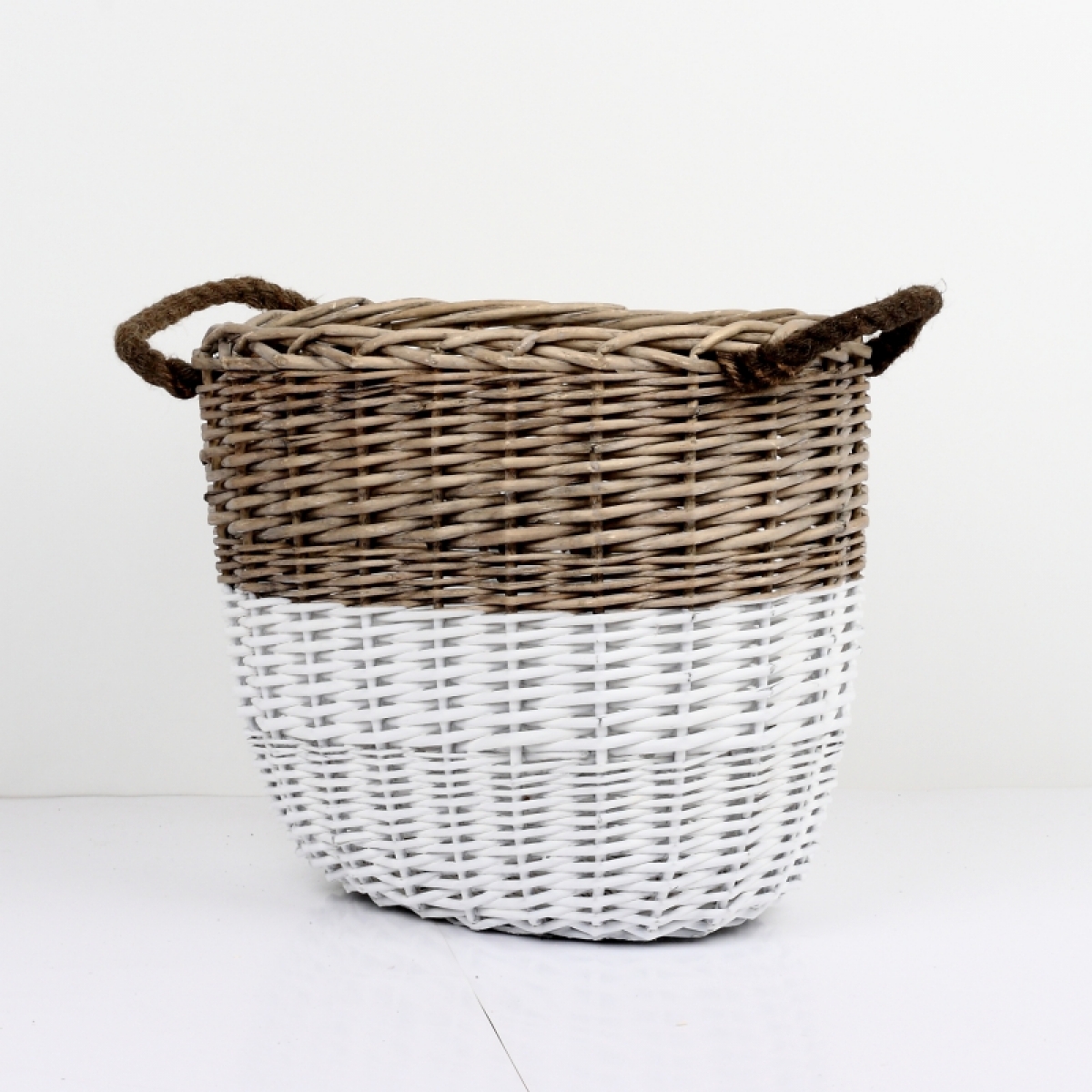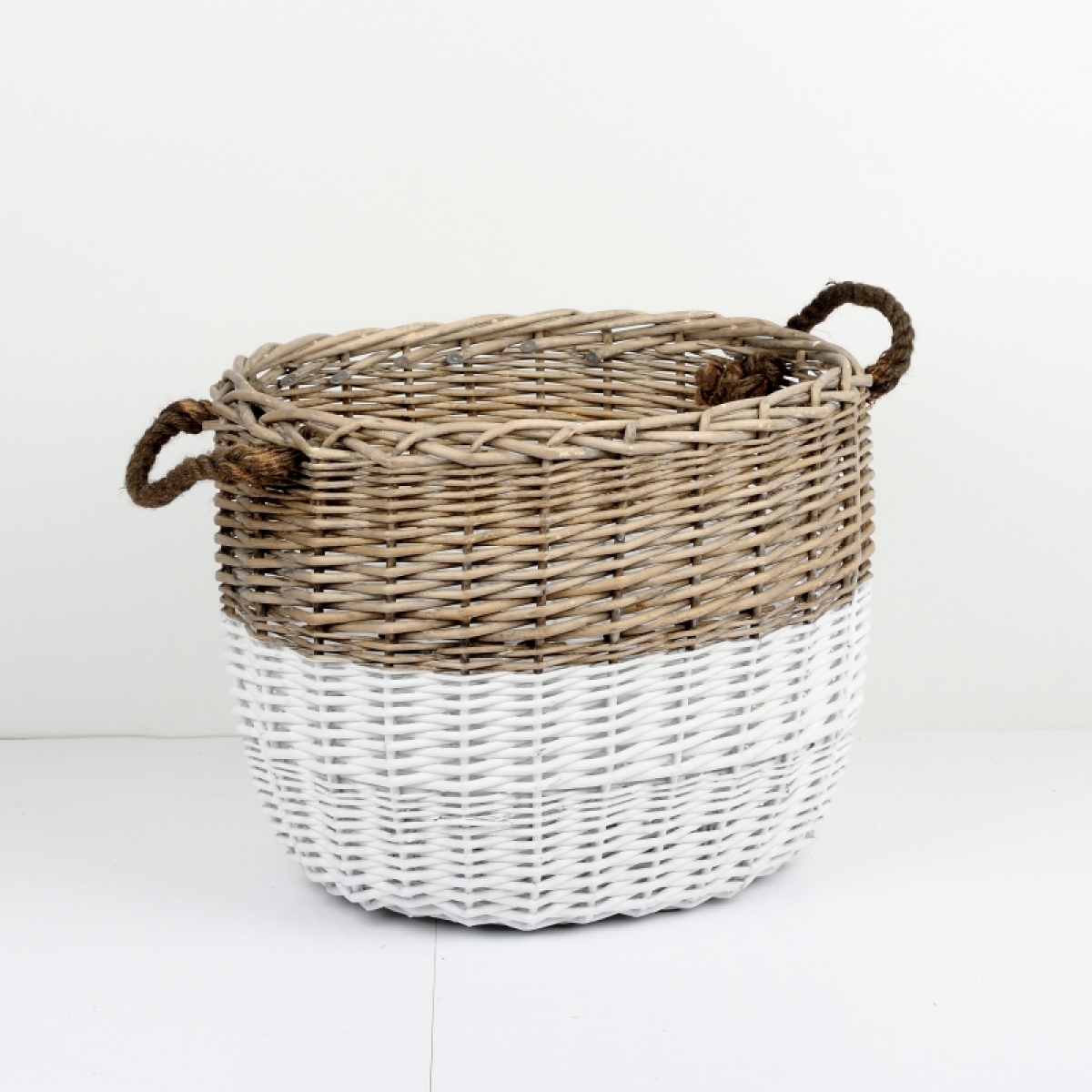 Prútený kôš oválny dvojfarebný 36x30x35cm si zaslúži u vás doma svoje čestné miesto. Mohutný kvalitný kôš z prírodných materiálov je ideálnou voľbou pre skladovanie vankúšikov a plédov alebo môže byť aj úžasným obalom na kvety.