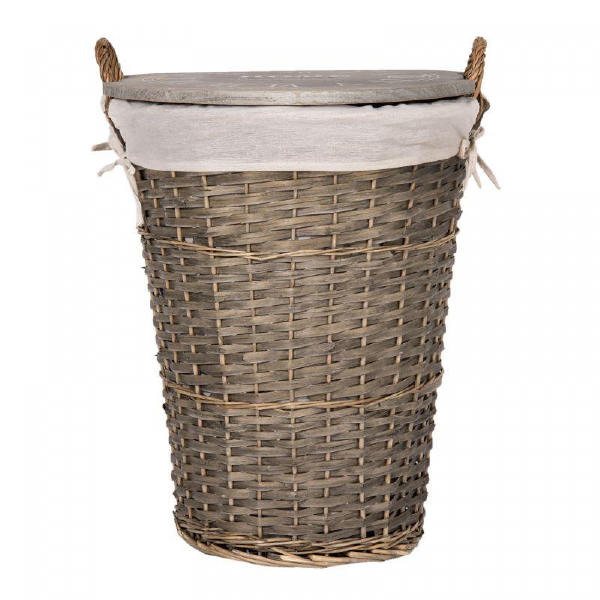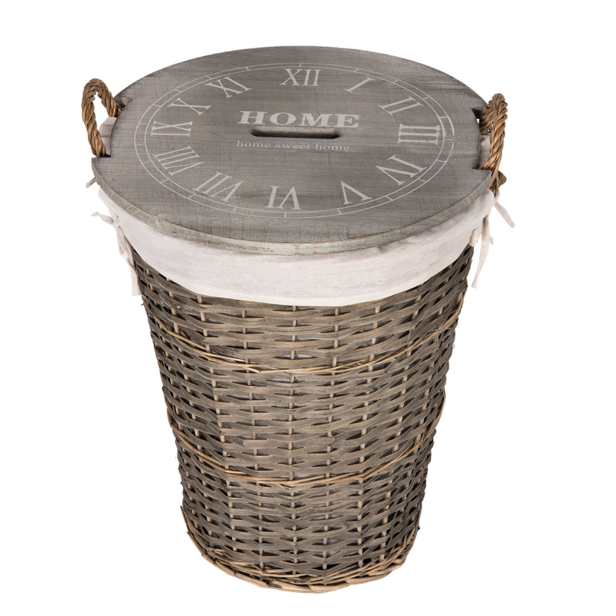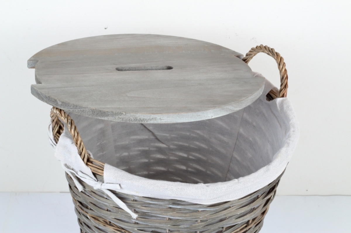 Prútený kôš s látkovým poťahom 47x45x61cm môže slúžiť napríklad ako kôš na bielizeň, pretože má šikovné drevené veko, ktoré všetko ukryje.