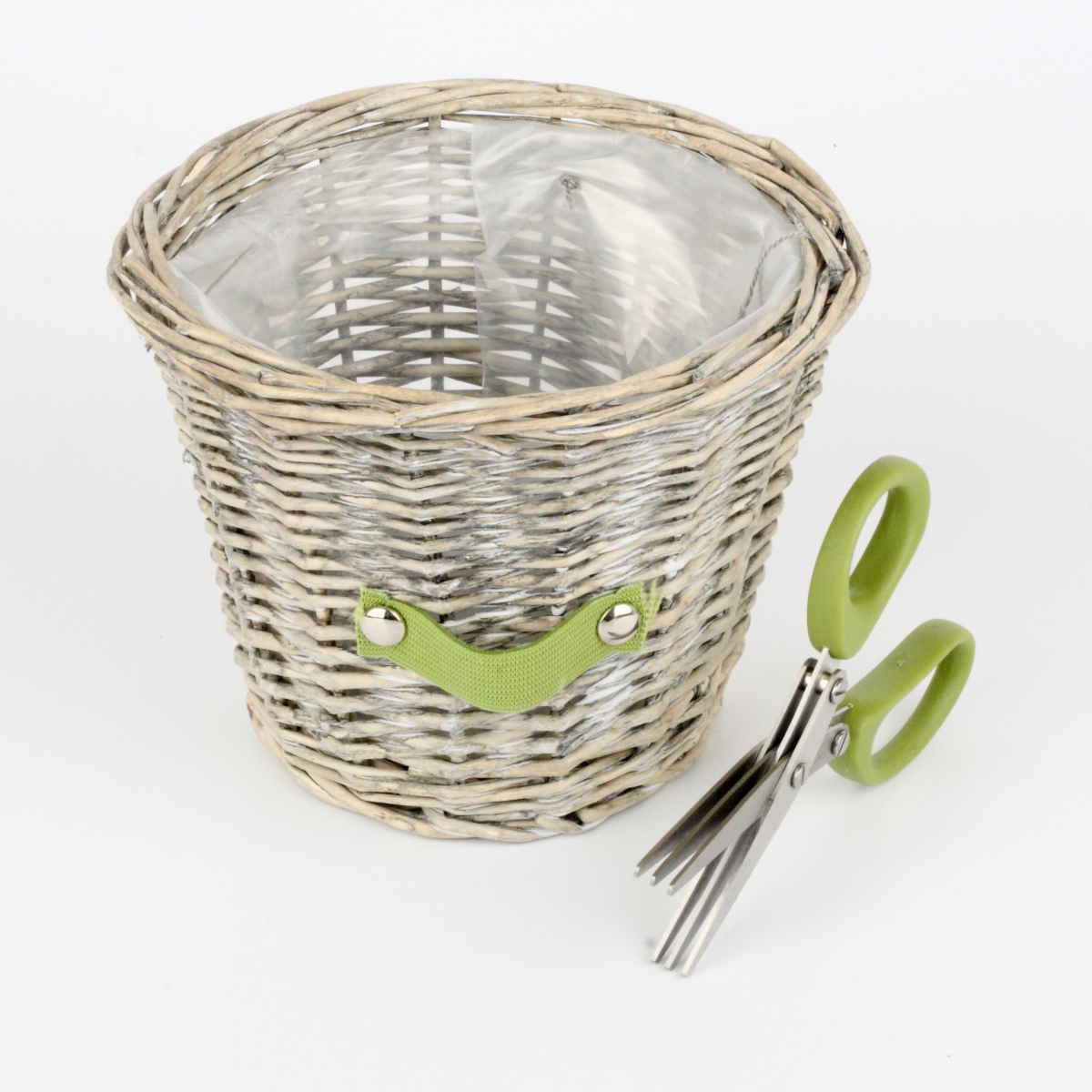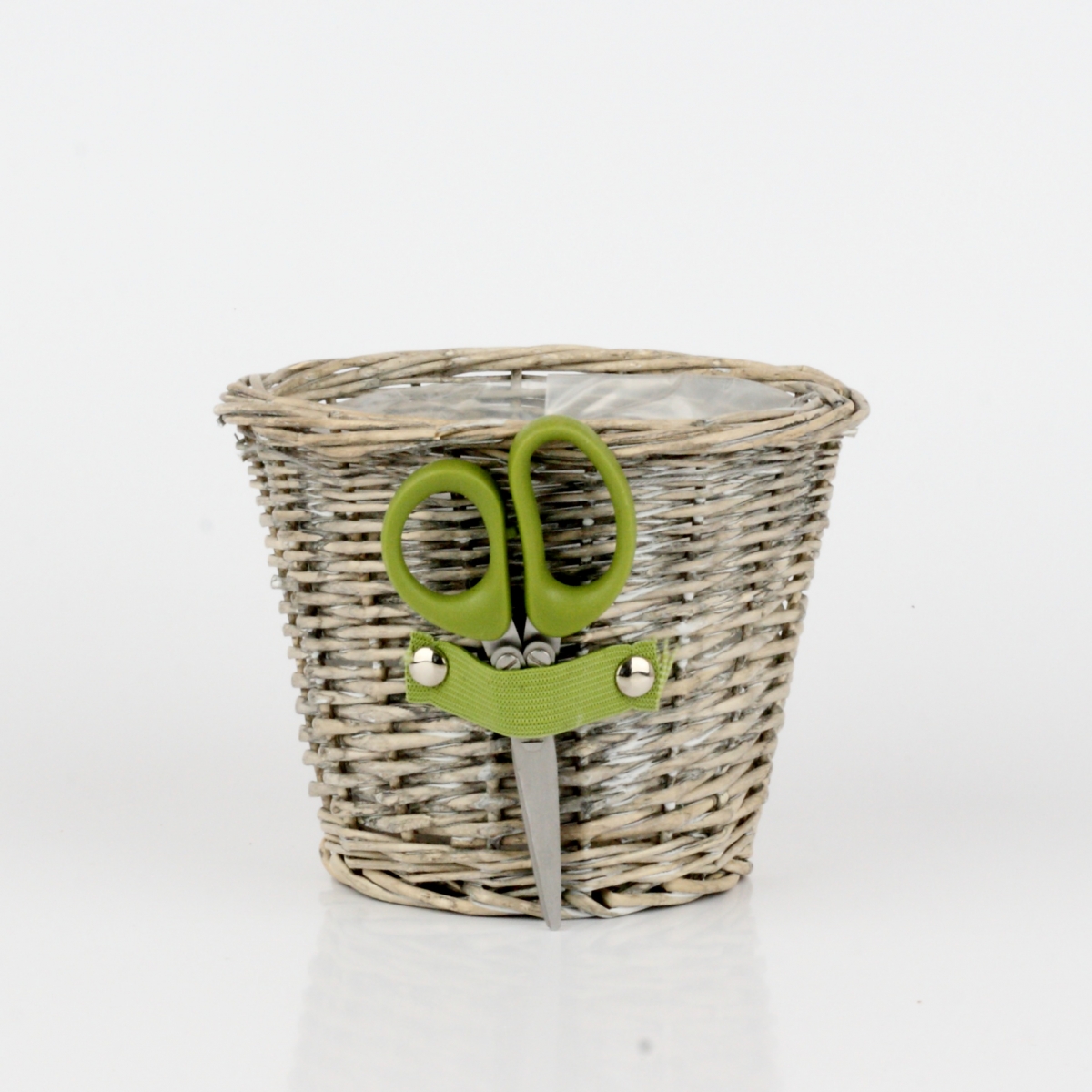 Prútený kvetináč na bylinky s nožnicami 17x14x18cm