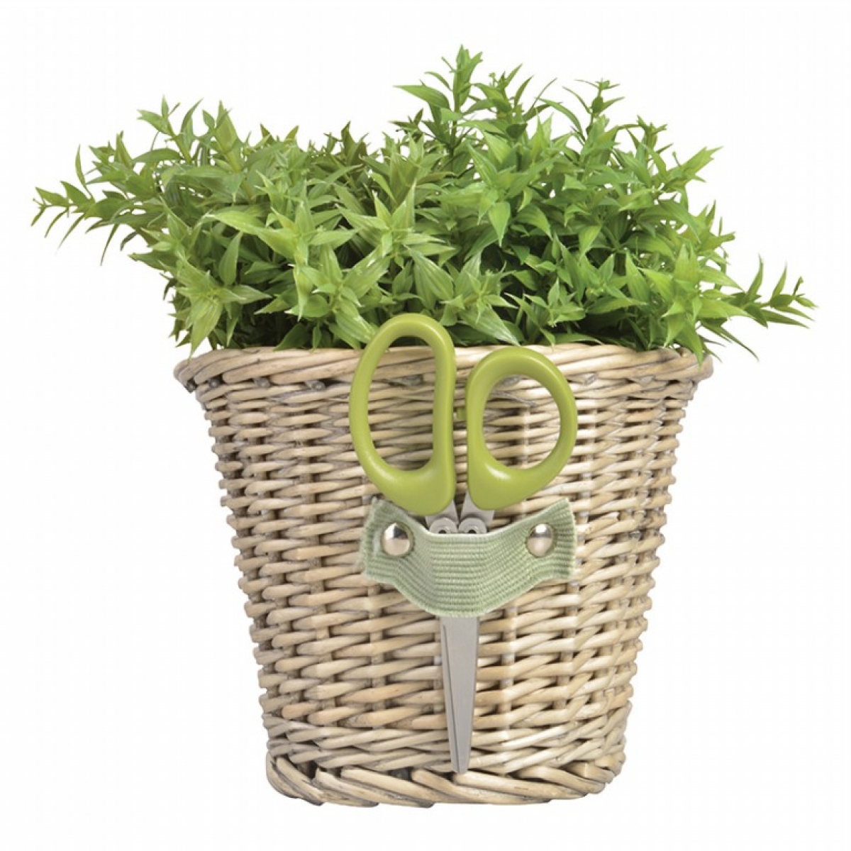 Kvetináč má popruh na nožnice, ktorými bylinky budete ľahko podľa potreby odstrihovať.