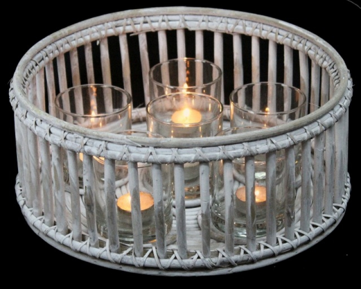 Prútený okrúhly svietnik na 6 sviečok 35x15cm
