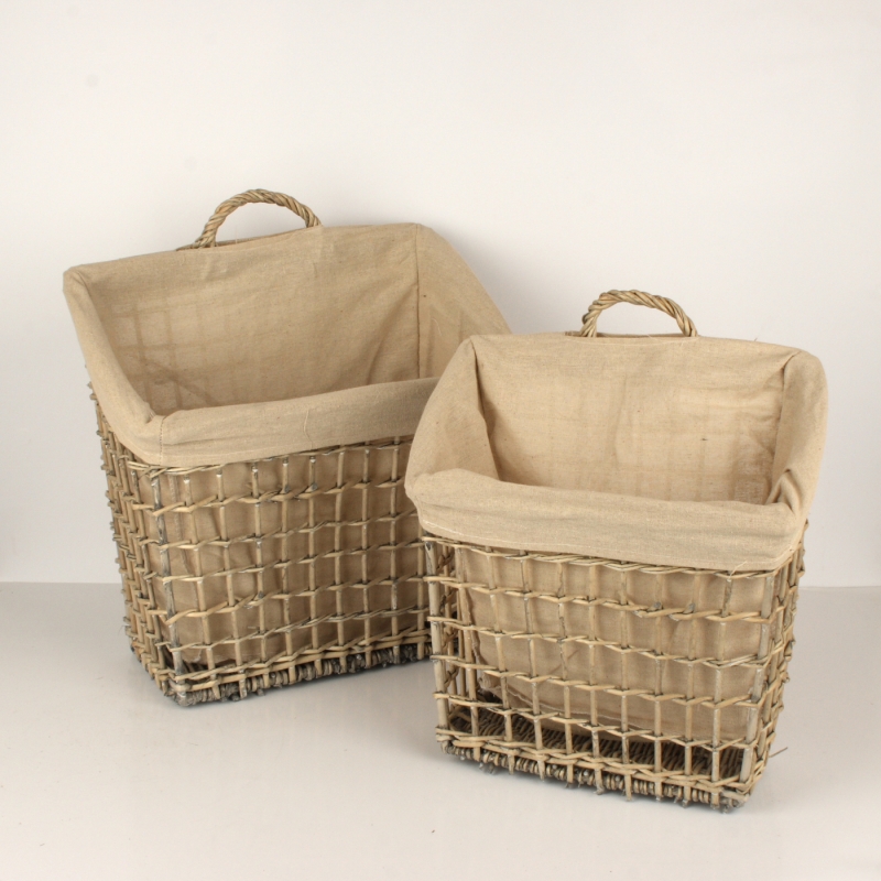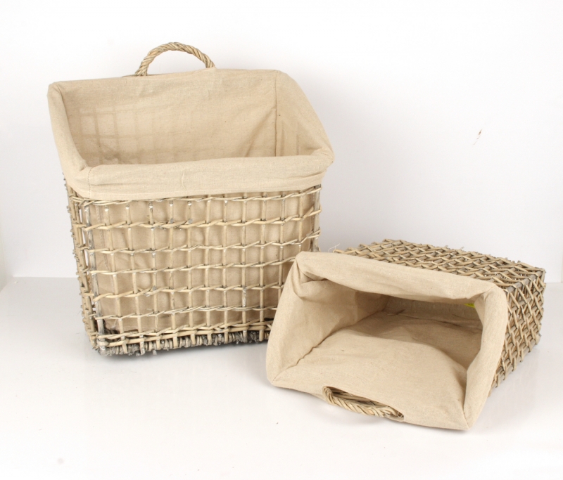 Prútený kôš má vnútri látku a veľké ucho na zavesenie. V rovnakom dizajne nájdete v kategórii ešte jeden menší kôš.