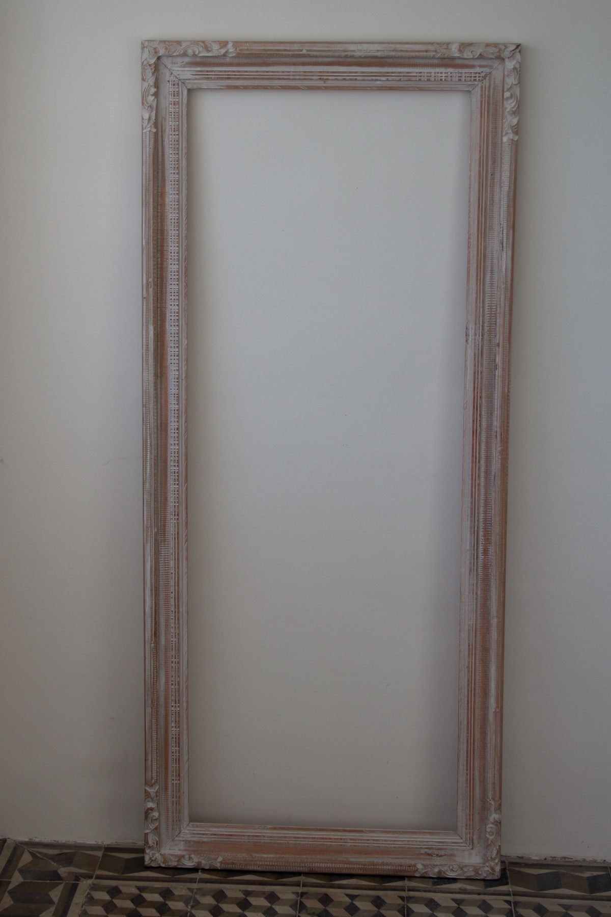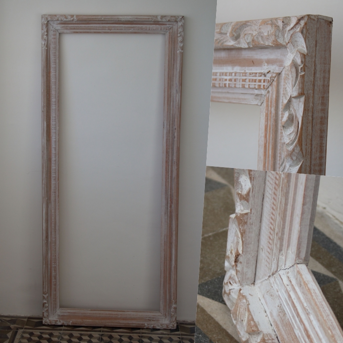 Rám na zrcadlo se světlým rámem a zdobenými rohy 60x160cm je vhodné do předsíně, chodby nebo vedle šatní skříně do ložnice. Ve velkém zrcadle snadno zkontrolujete svůj vzhled před odchodem z domu.