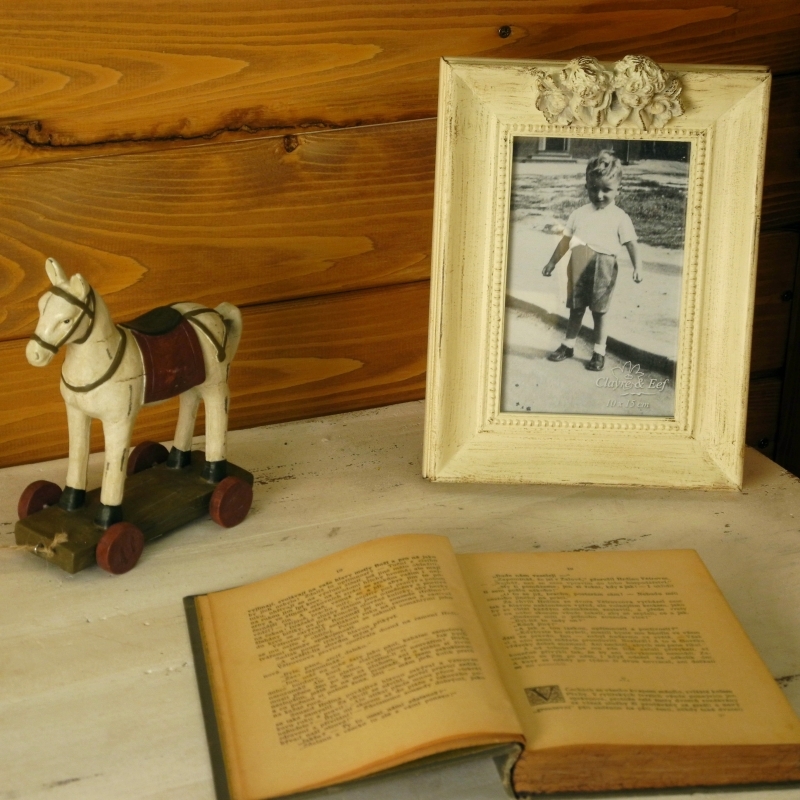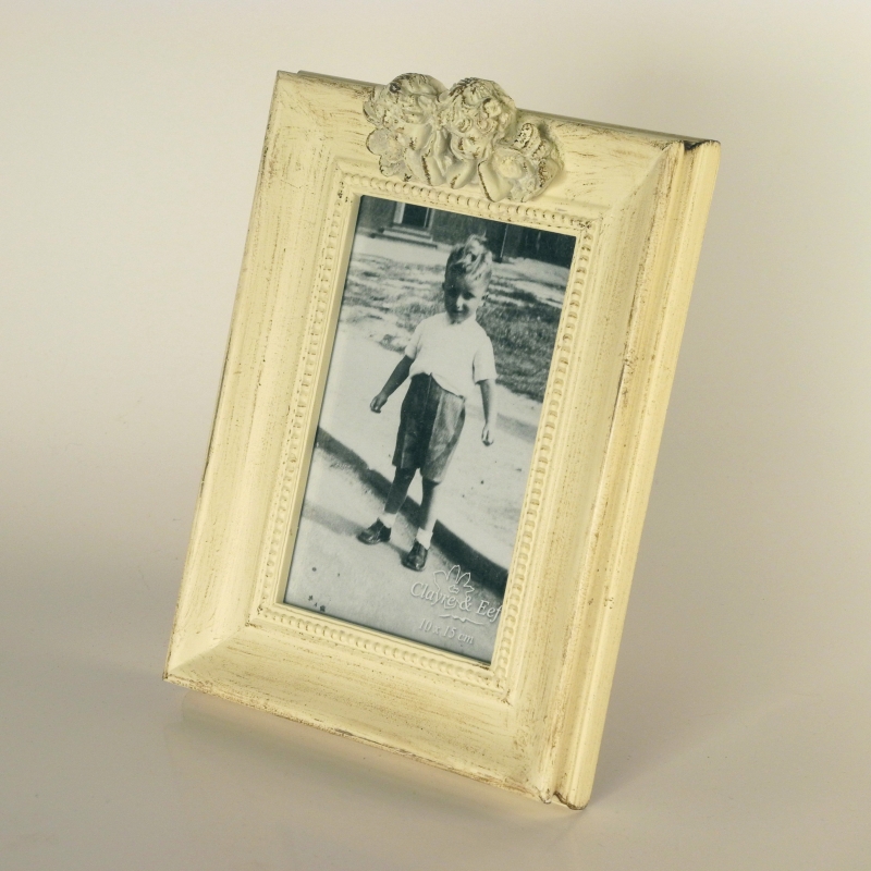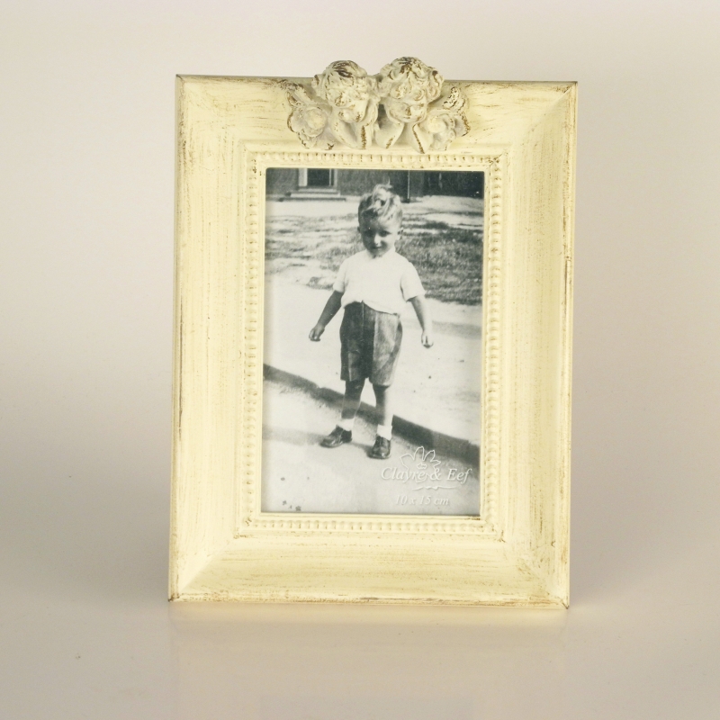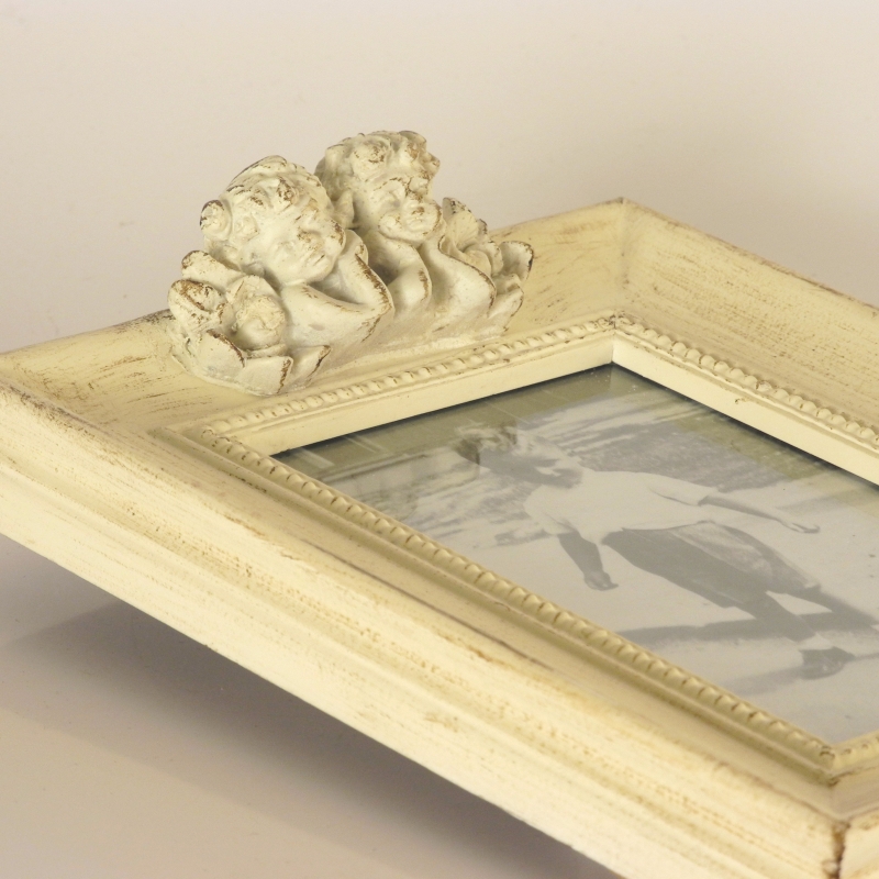 Fotorámeek s elegantnou patinou, ktorý stráži dva malý anjelici na hornej strane.