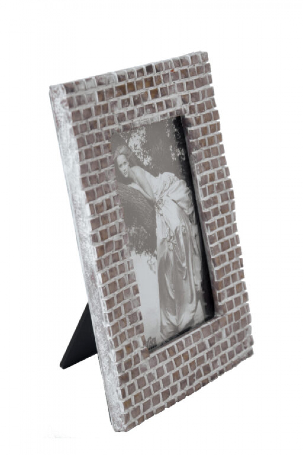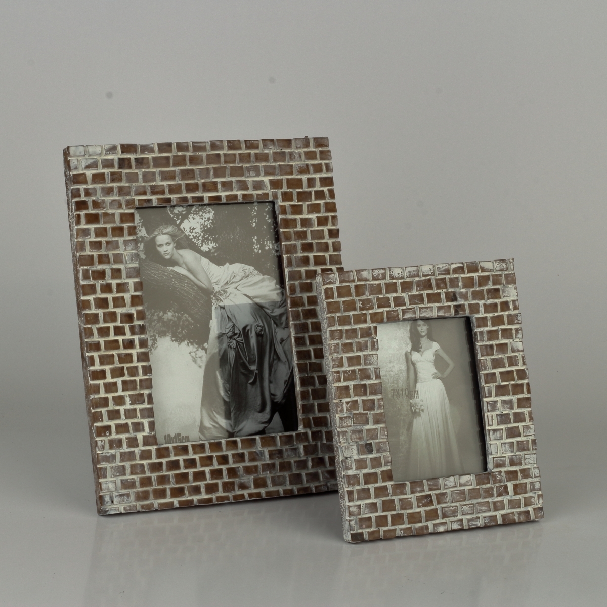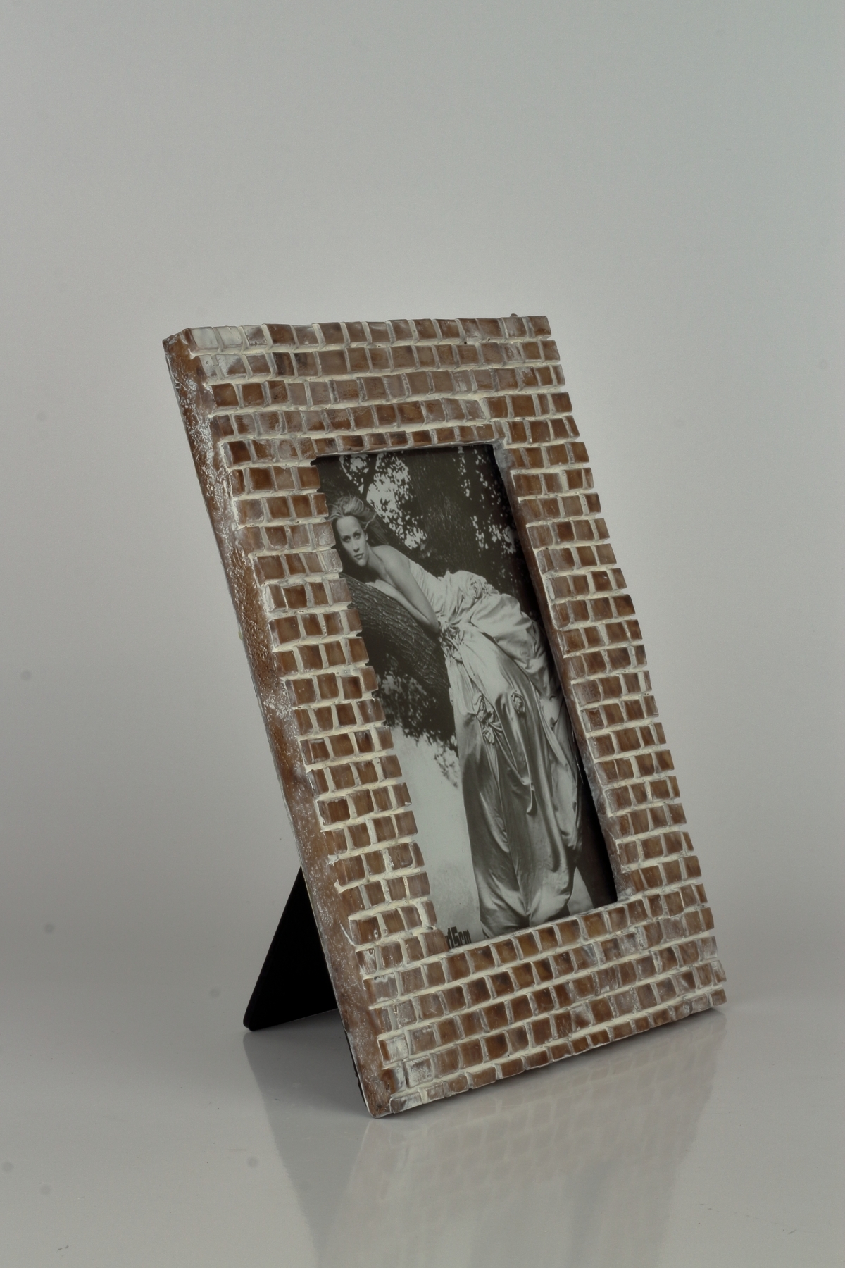 Rámček na foto s motívom tehličiek je veľmi moderný a štýlový doplnok, ktorý vynikne obzvlášť na jednofarebných stenách či stoloch.