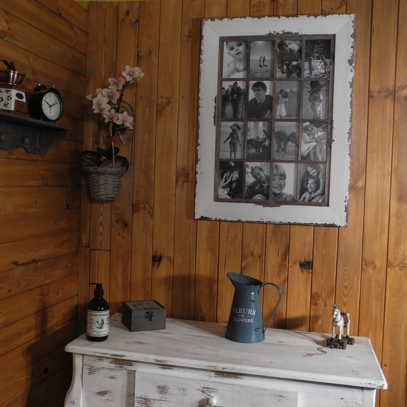 Robustný rám z dreva je opatrený kovovými háčikmi. Zavesiť ho môžete na výšku aj na šírku. Fotorámik môže slúžiť ako krásne uchovanie spomienok u vás doma. Ponúka sa ale aj ako nevšedný svadobný či iný dar.