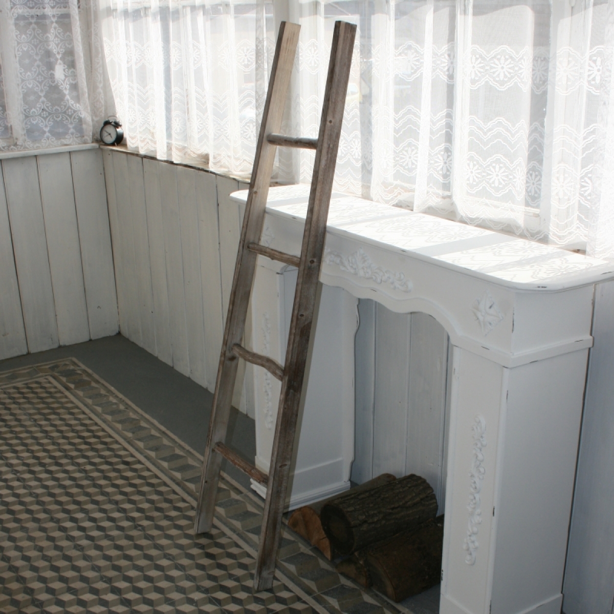 Rebrík môžete využiť v spálni na odkladanie zvrškov, alebo mu dať čisto dekoratívny účel.