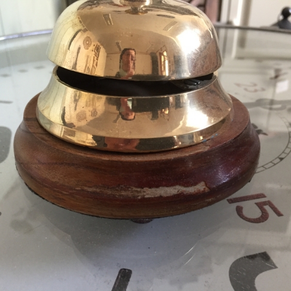 Recepční zvonek byl vyřazen z důvodu uděrku vrchního laku. Opravitelné. Nebrání řádnému užívání.