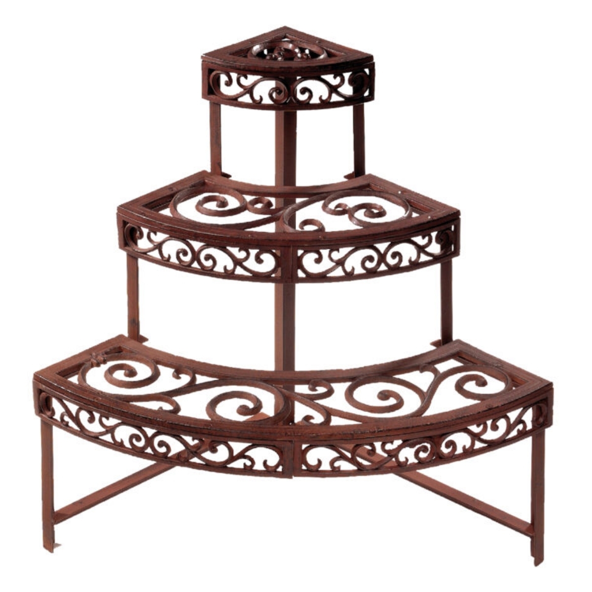 Regál na kvety štvrťkruhový s ozdobnými ornamentmi má tri police, na ktoré môžete umiestniť kvetináče a "zazeleniť" tak akýkoľvek roh doma alebo vo Vašej záhrade.