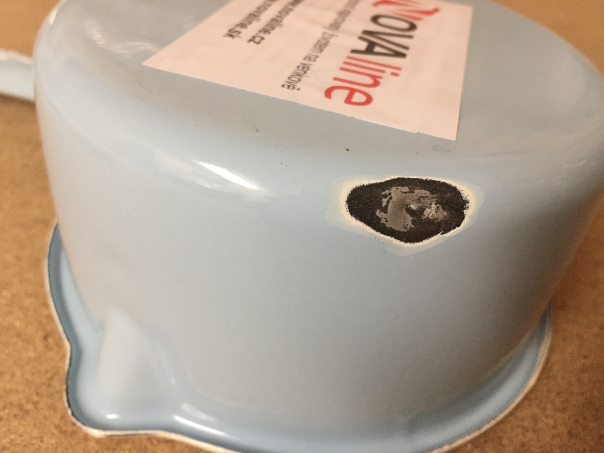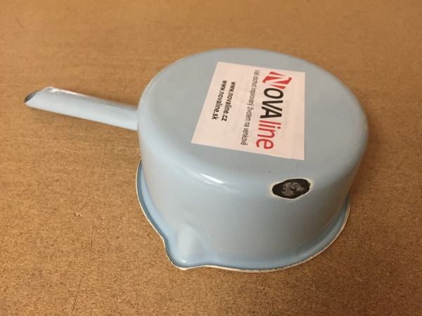 Vyřazeno z důvodu odprýsknutí smaltu v jednom místě cca15mm. Nebrání úžívání.