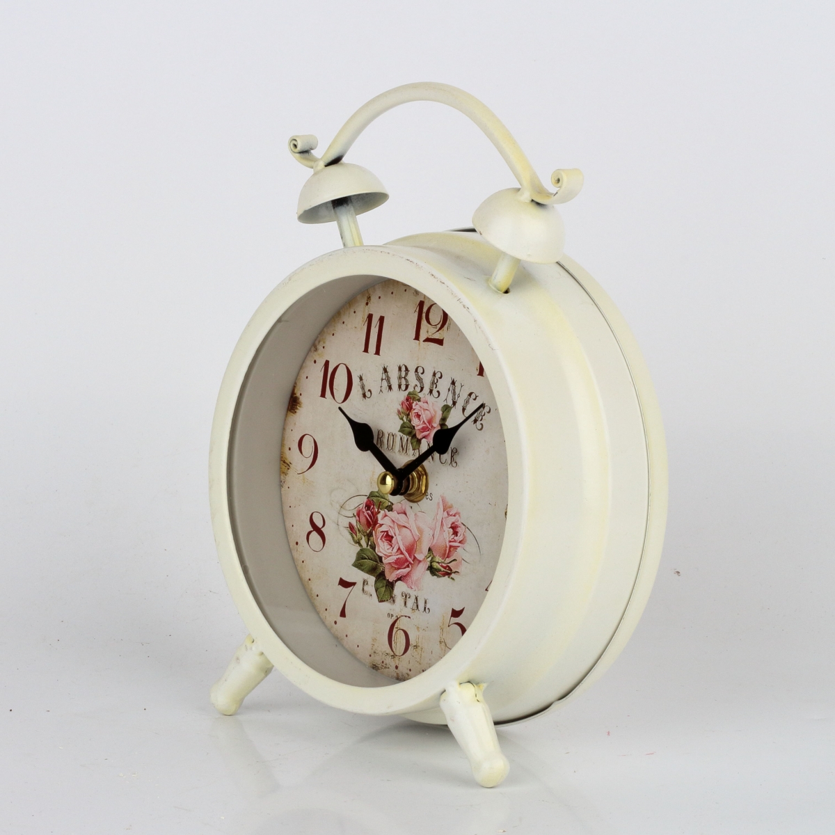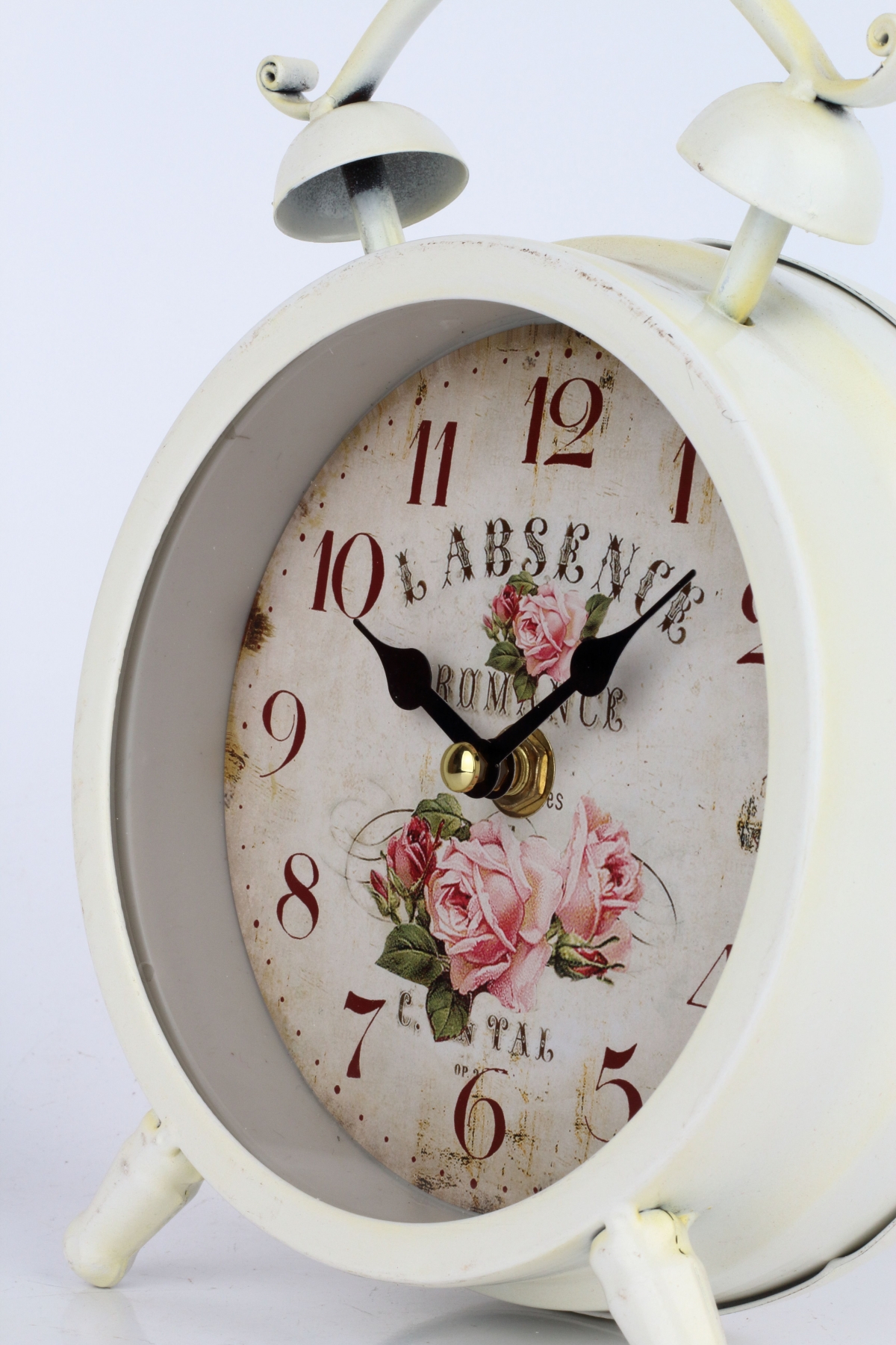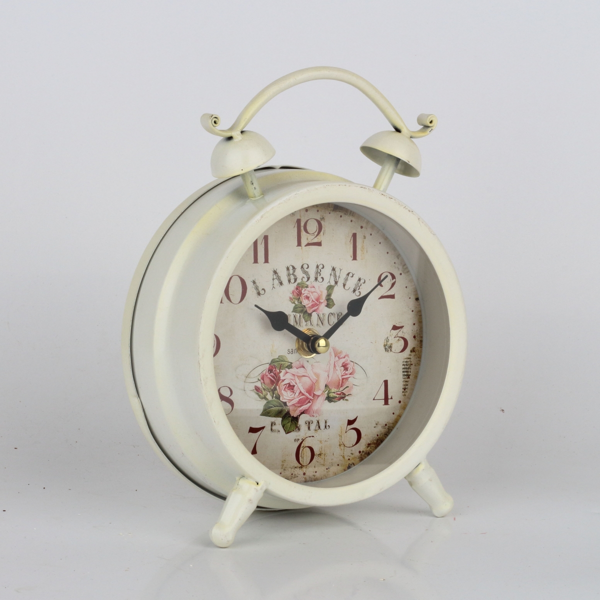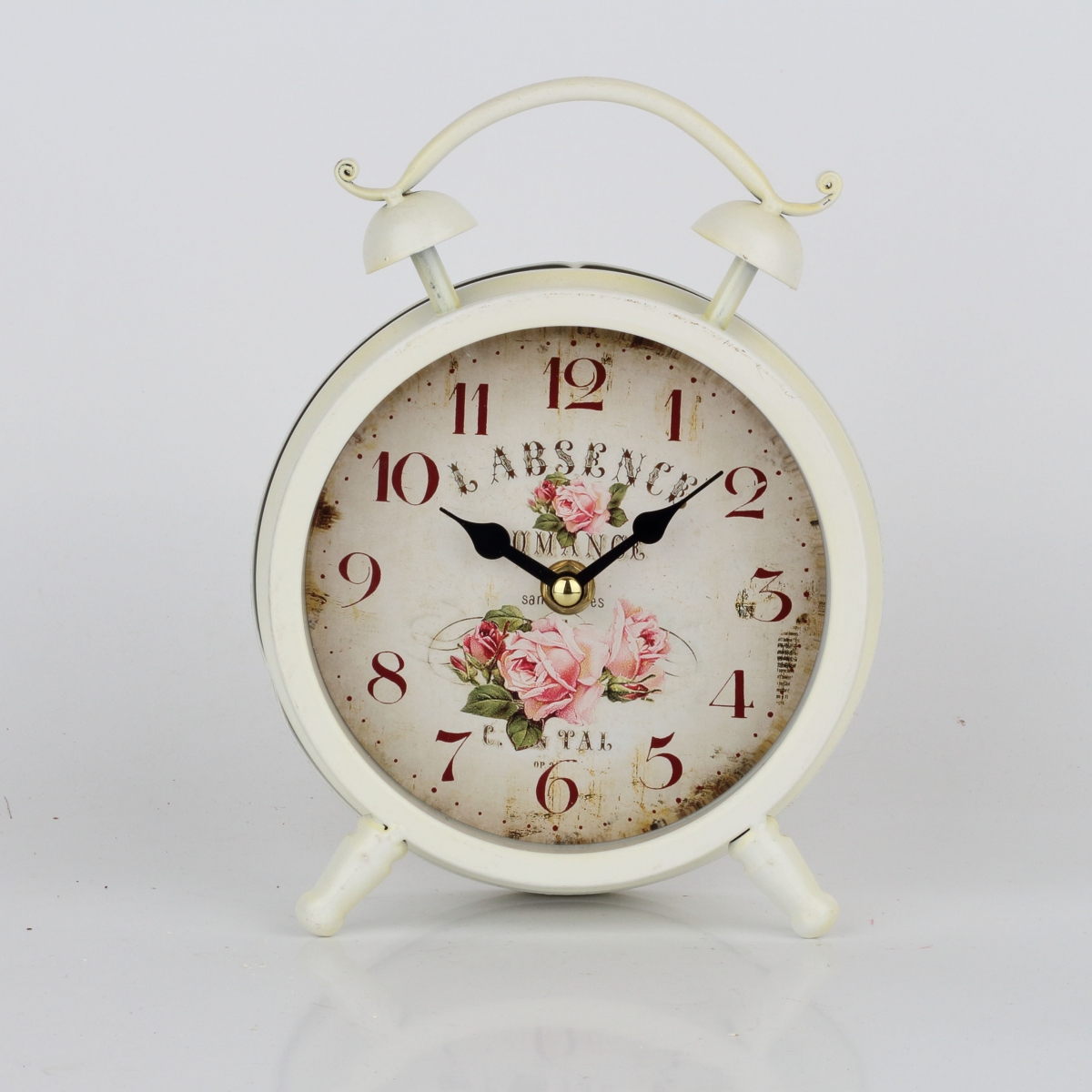 Stolové hodiny sú príjemnou alternatívou nástenných hodín, tieto pripomínajú starý budík a jemné farby a kvetinové motívy sú nádherným doplnkom vidieckeho interiéru.