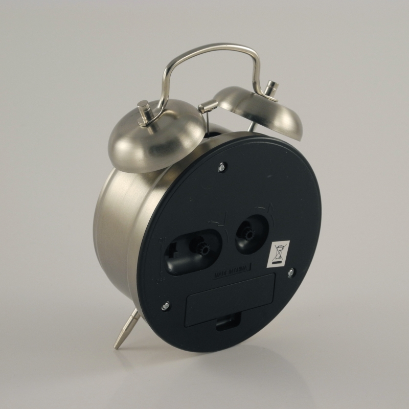 Priemer jeho ciferníku je 10 cm. Budík je vyrobený zo striebristého kovu. Arabské číslice sú dobre čitateľné, naznačené sú aj minúty.