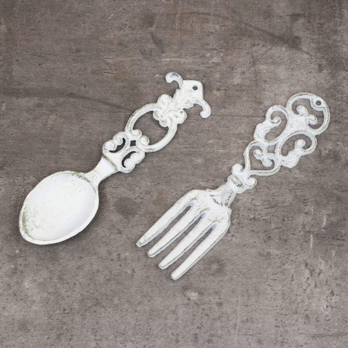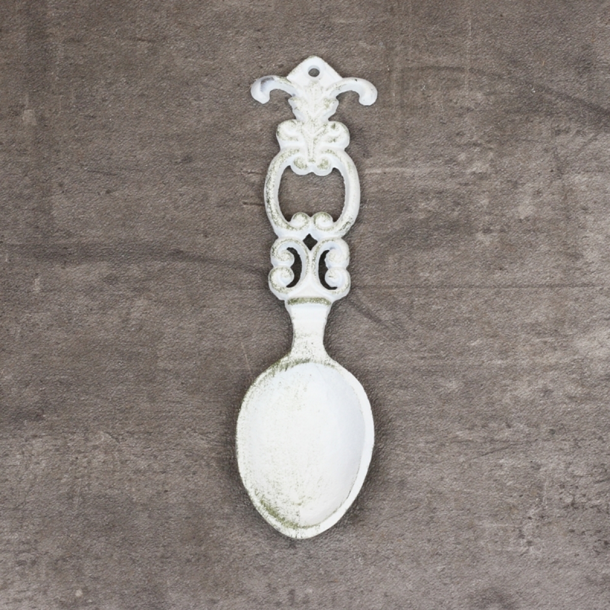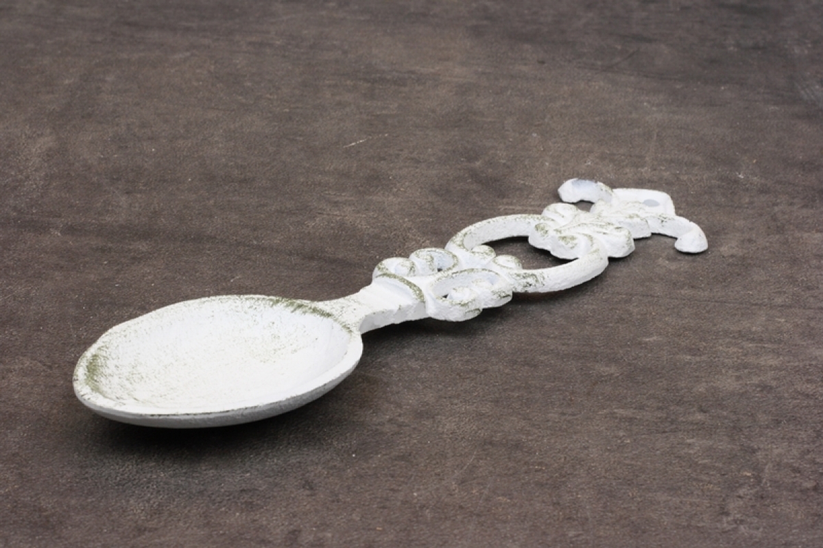 Retro dekorácie liatinová lyžice biela 21,5cm ako netradičný doplnok do štýlovej kuchyne.