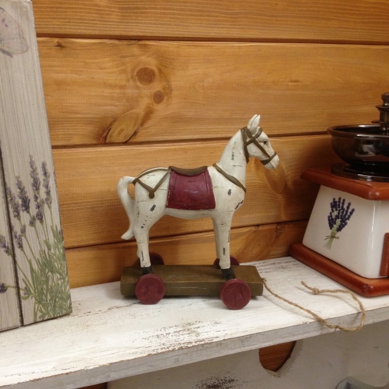 Retro dekorácie - retro koník na povrázku 15x16x7cm