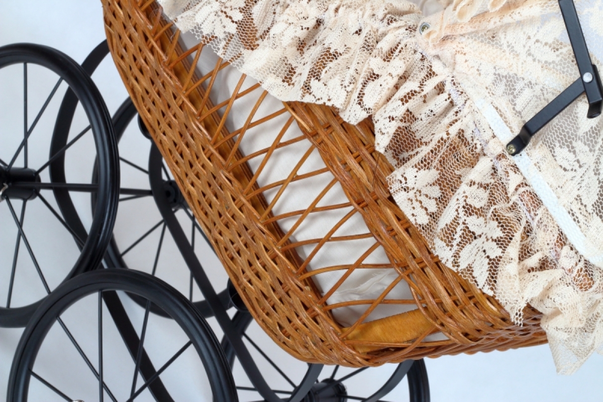 Prútený retro kočík je úžasnou bytovú dekorácií. Môžete doň umiestniť porcelánovú bábiku, ale aj veľkú kvetinu a využiť tak kočík ako netradičný stojan na kvety.