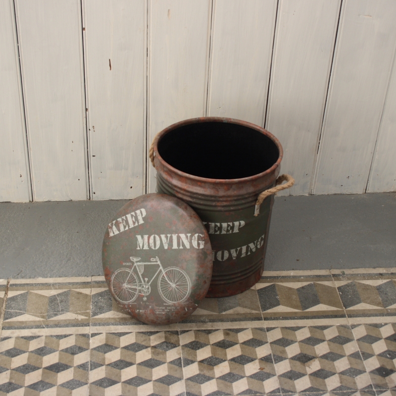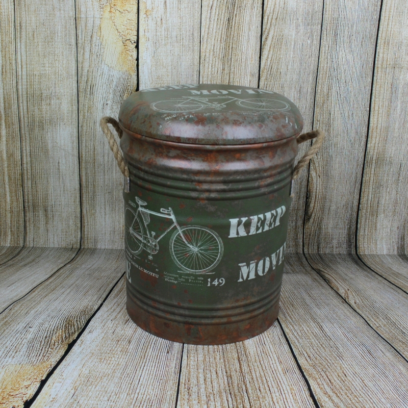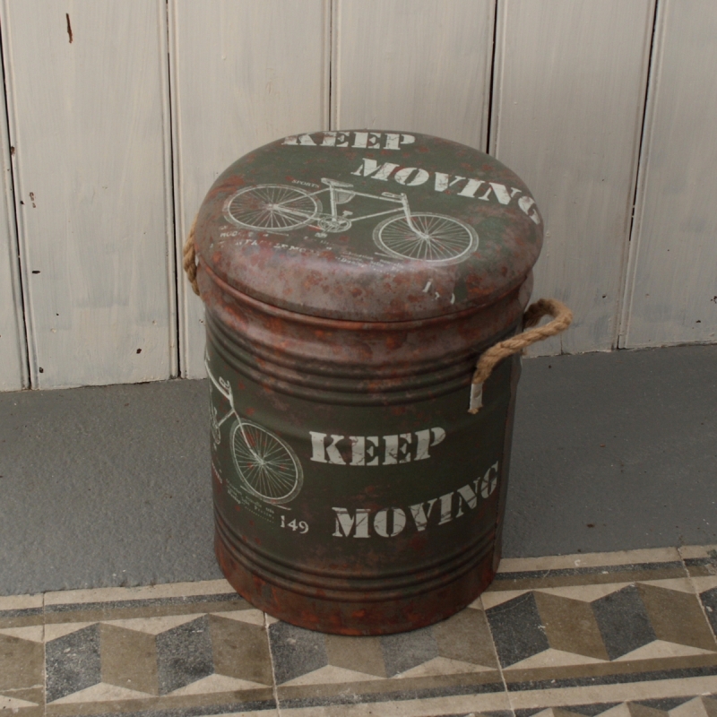 Retro kovový taburet s úložným priestorom Keep moving 31x36x31cm
