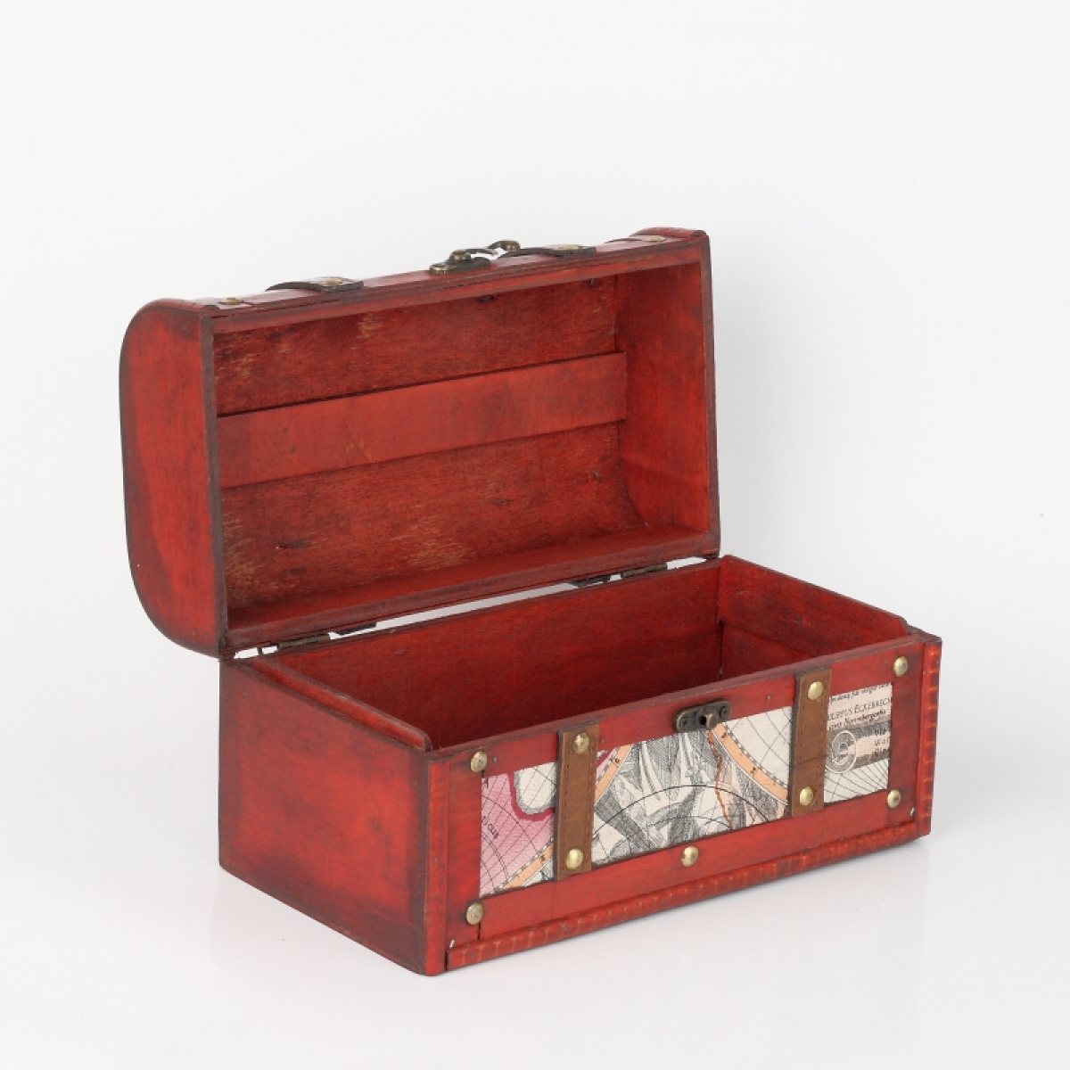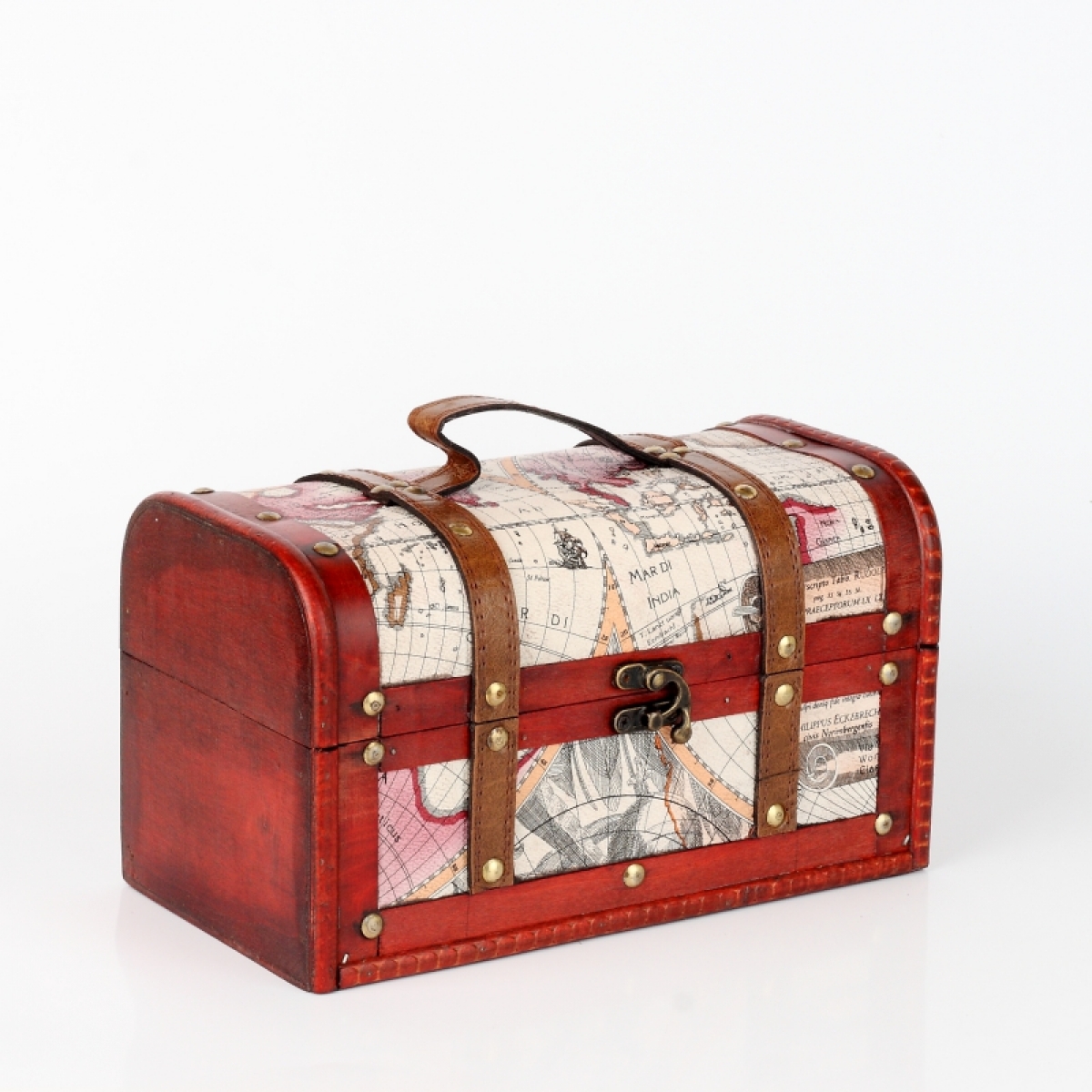 Drevený kufrík s koženkovými detailmi má veko na západku a slúži ako krásna dekorácia aj šikovný úložný priestor. Môžete v ňom skladovať fotografie alebo spomienky z ciest.