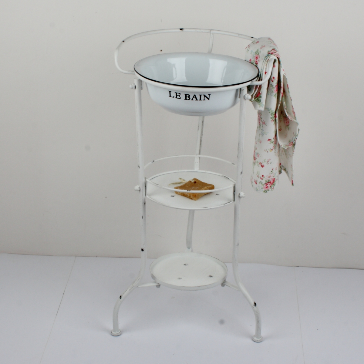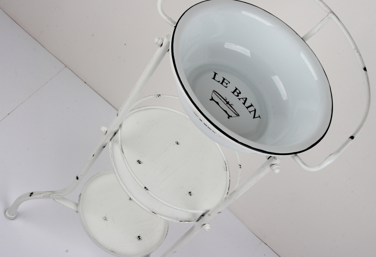 Retro kúpeľňový stojan na umývadlo guľatý 40x37x81cm môže slúžiť ako umývací kútik na záhrade alebo ako štýlový doplnok vašej vidiecke kúpeľne.