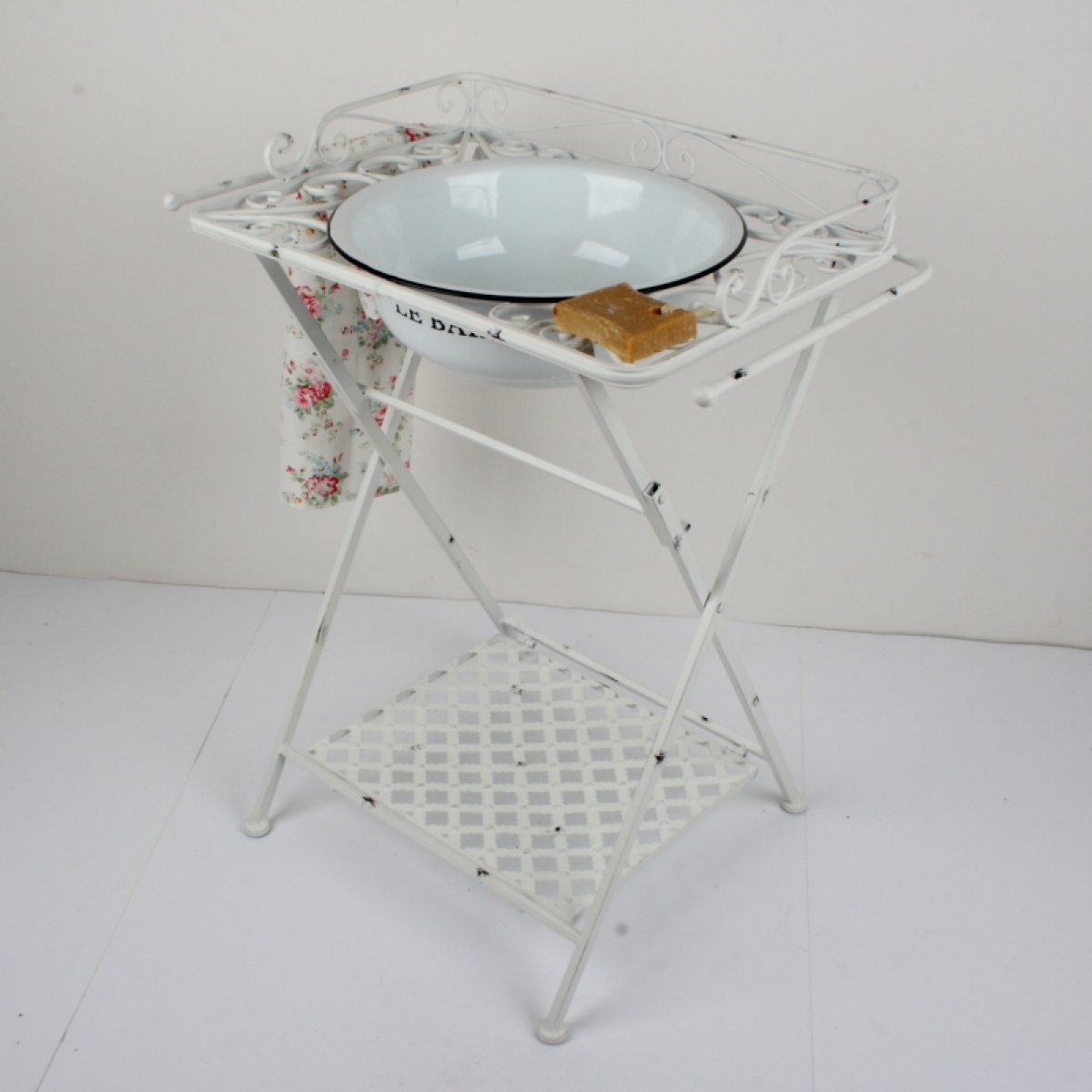 Retro kúpeľňový stojan na umývadlo 61x37x81cm môže slúžiť ako umývací kútik na záhrade alebo ako štýlový doplnok vašej vidiecke kúpeľne.